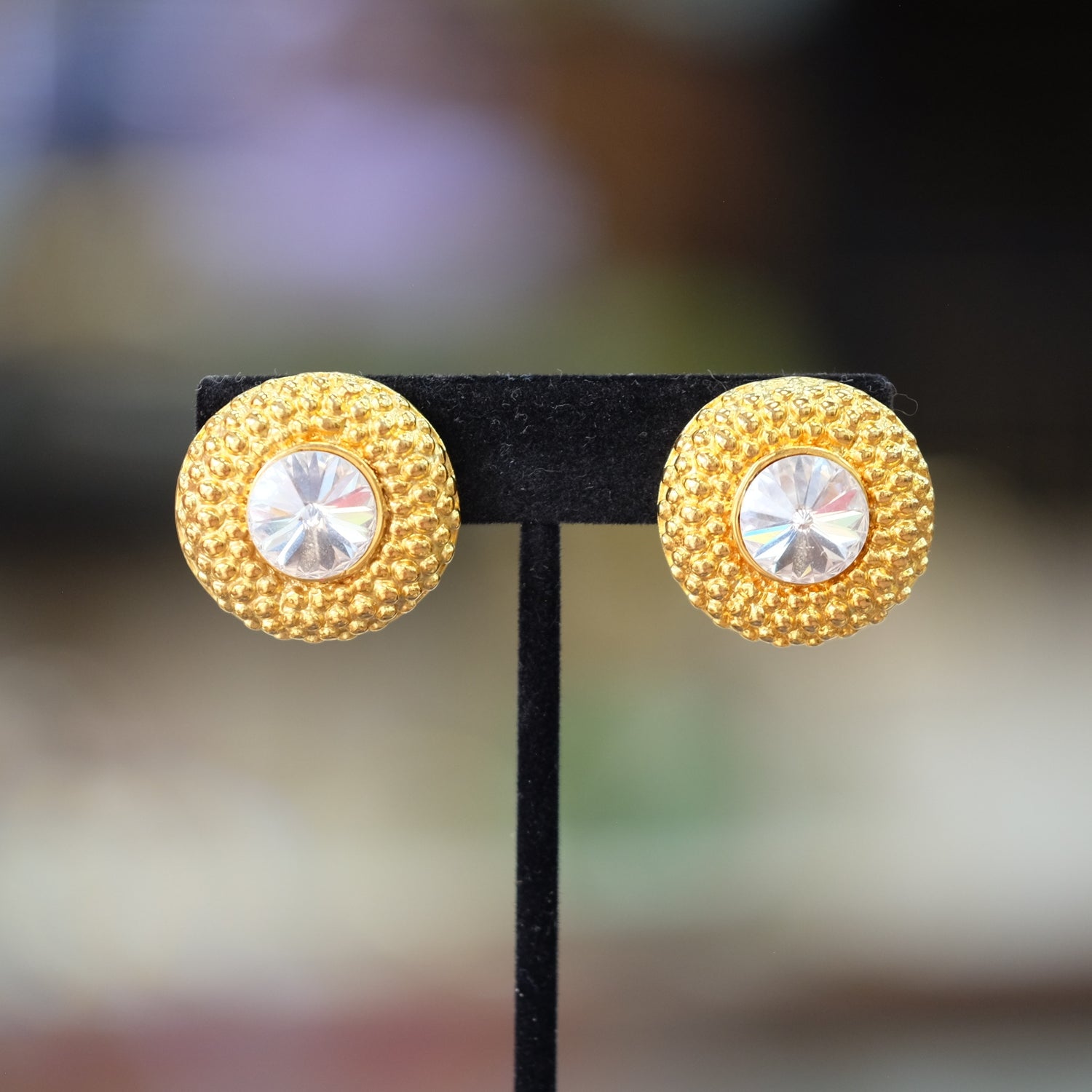 Vintage Round Clear Rhinestones Earrings 1990s