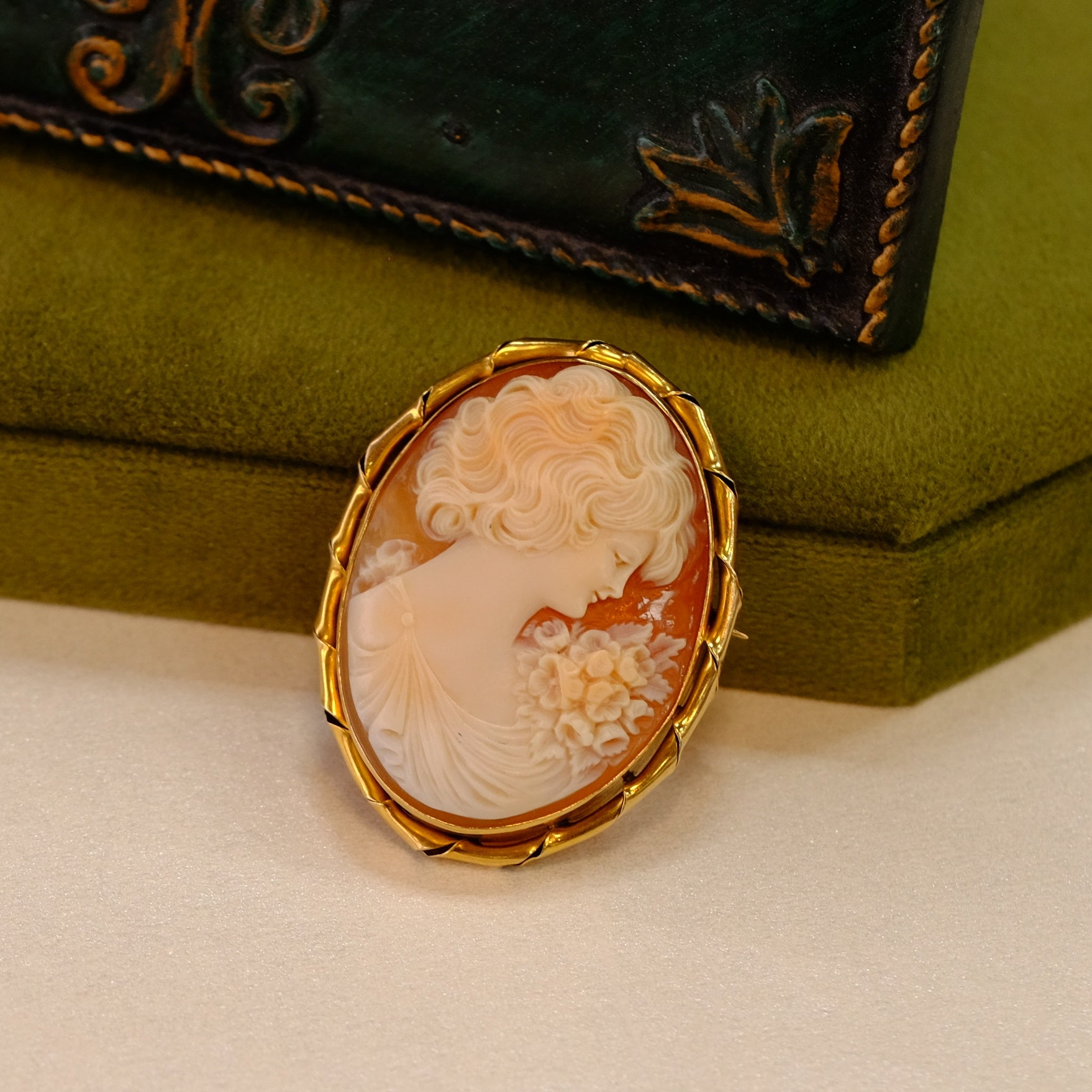 This elegant 10K gold cameo brooch pendant combines timeless artistry with refined craftsmanship. The delicate cameo features intricate carved detailing, showcasing classical beauty in a warm gold setting. Versatile in design, it can be worn as a brooch or pendant, making it a sophisticated addition to any jewelry collection. Perfect for those who appreciate vintage-inspired pieces and heirloom-quality accessories. An ideal choice for special occasions or everyday elegance.