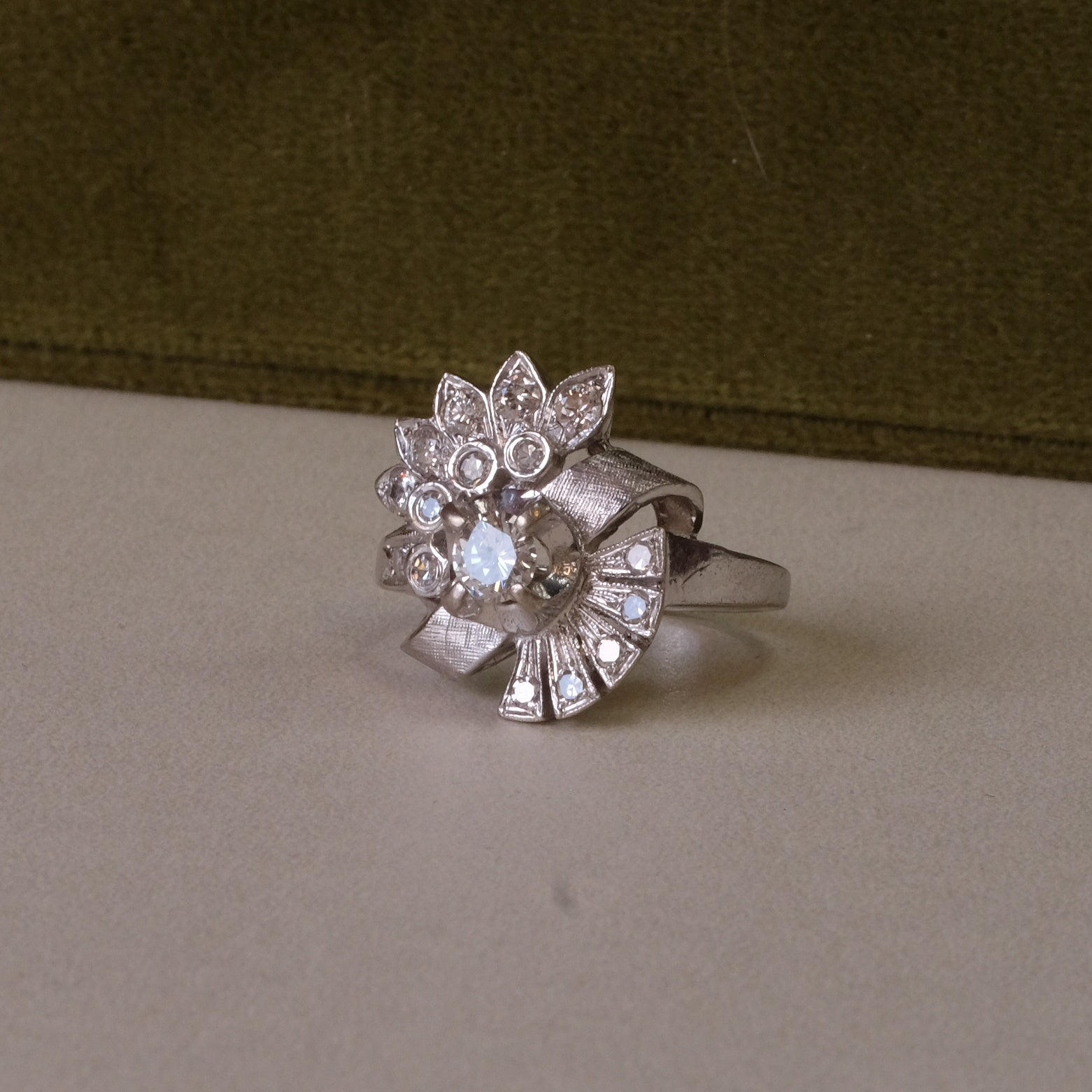 14K Gold 0.65 Diamond Cocktail Ring 1950s