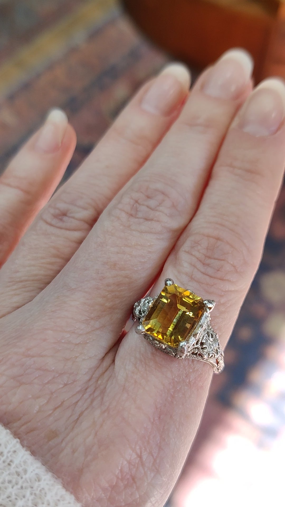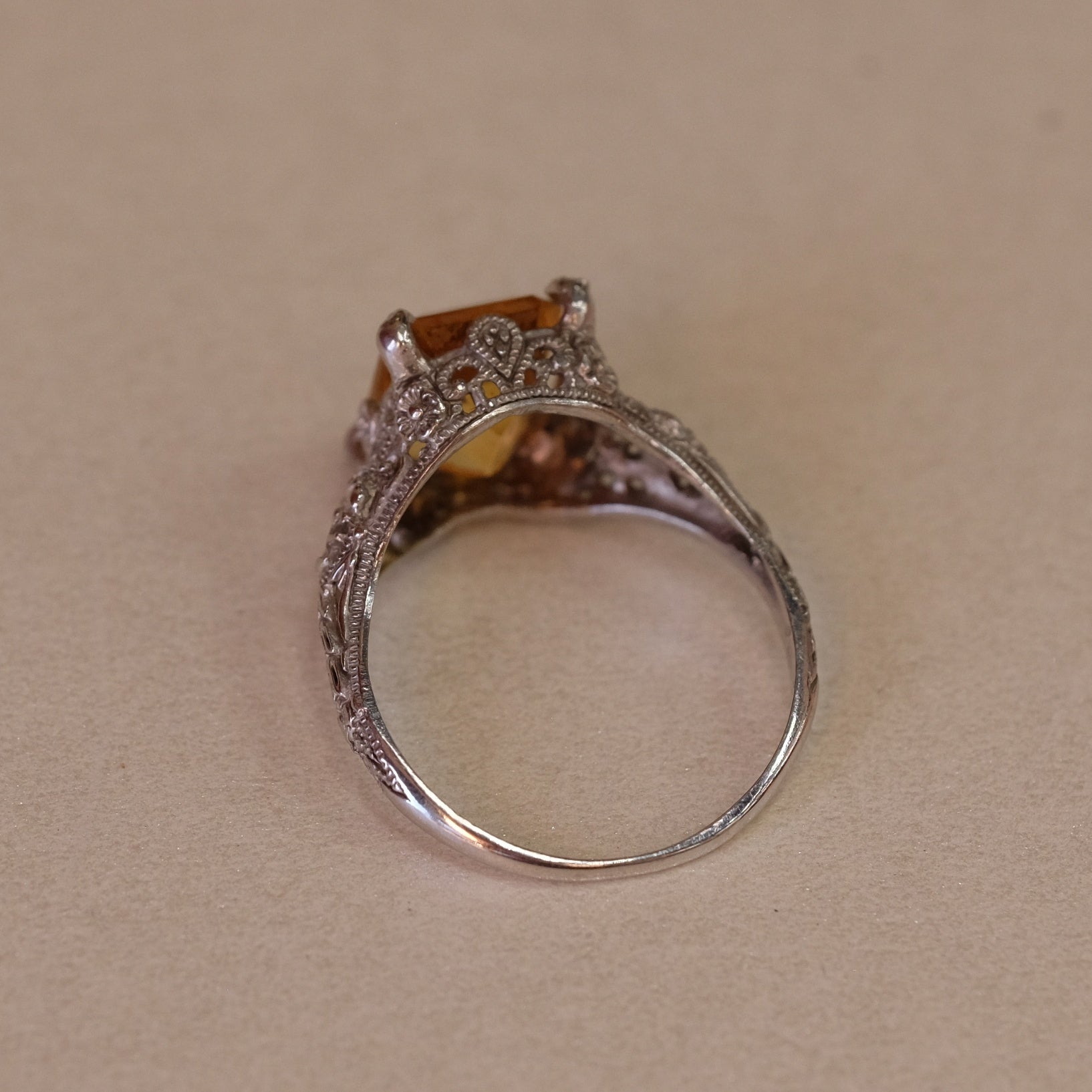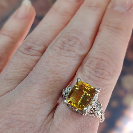 14K Gold Citrine and Filigree Ring