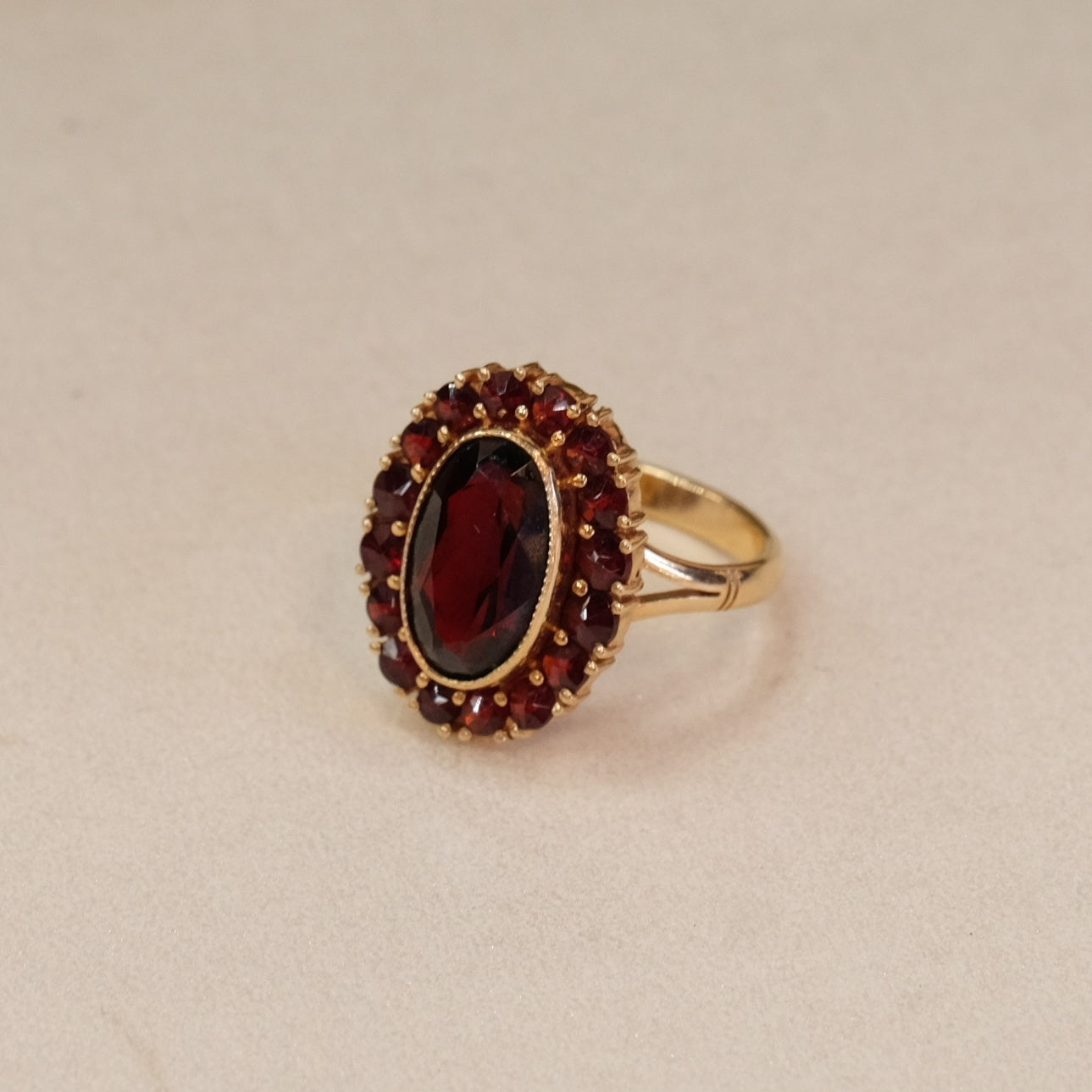 This elegant 14k gold ring features a vibrant garnet stone, known for its rich red color and timeless appeal. Crafted with quality gold, it offers durability and a classic look perfect for everyday wear or special occasions. The garnet adds a touch of sophistication, making this ring a versatile addition to any jewelry collection.