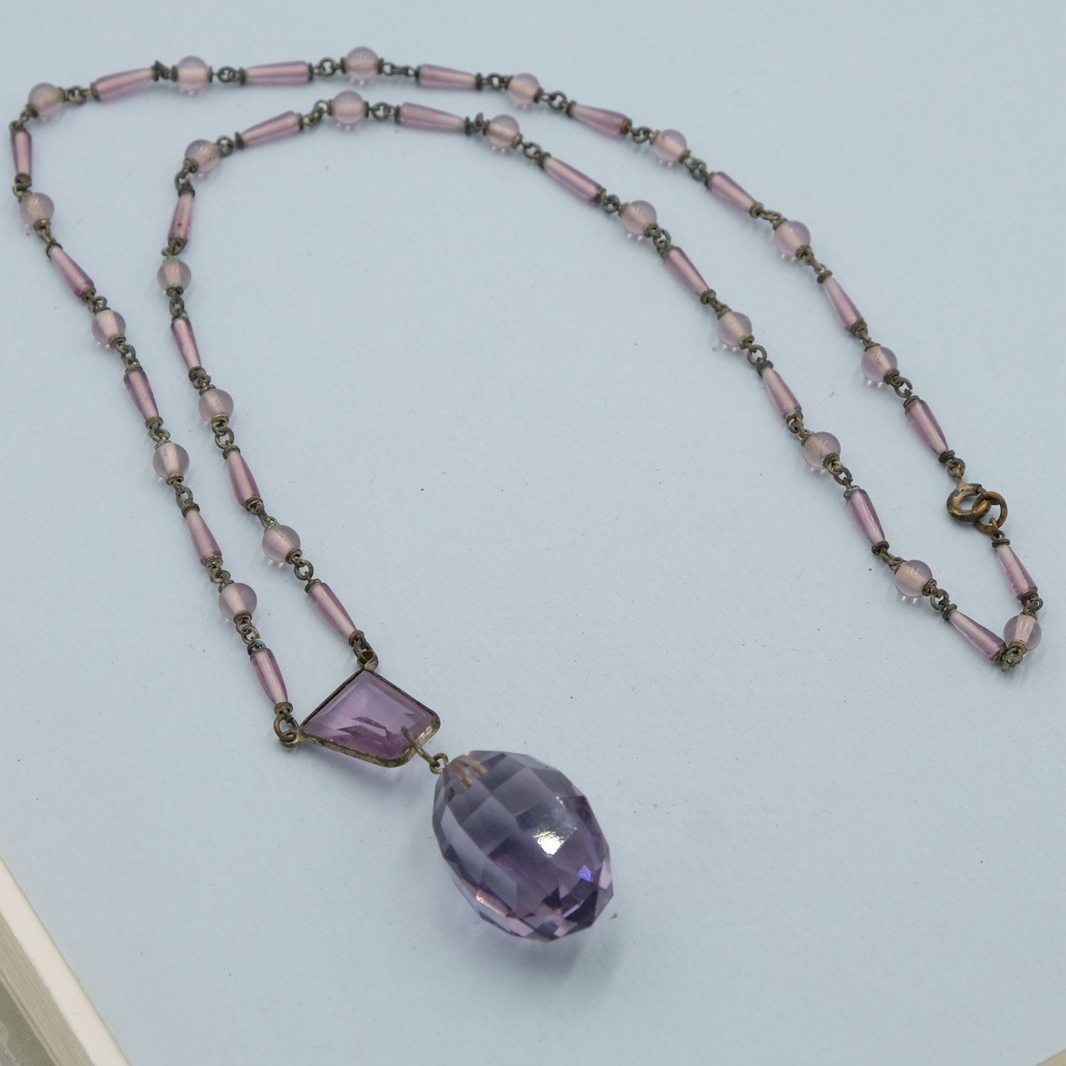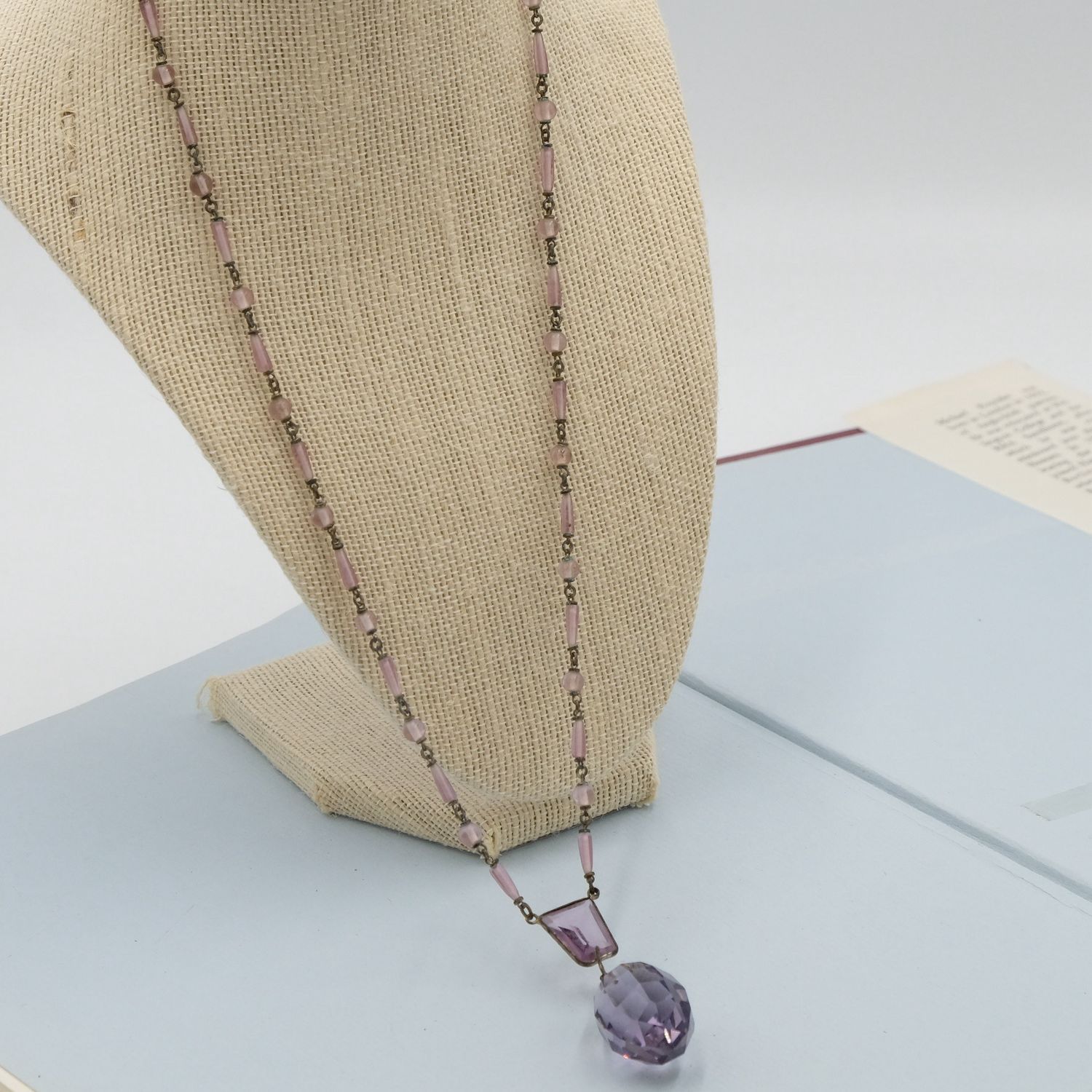 Antique Czech Purple Drop Delicate Necklace 1910s