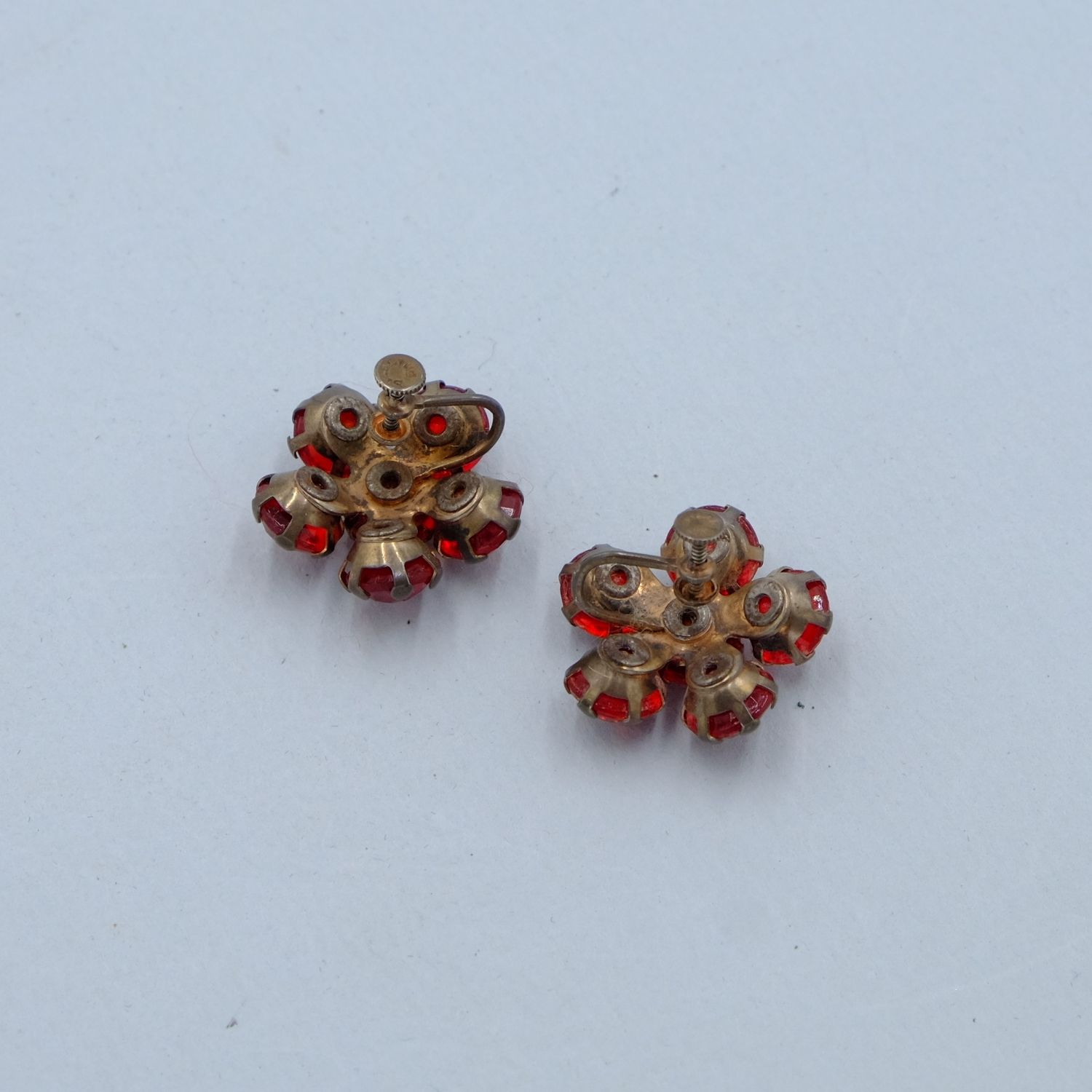 Antique Sterling Red Cluster Rhinestone Earrings 1930s