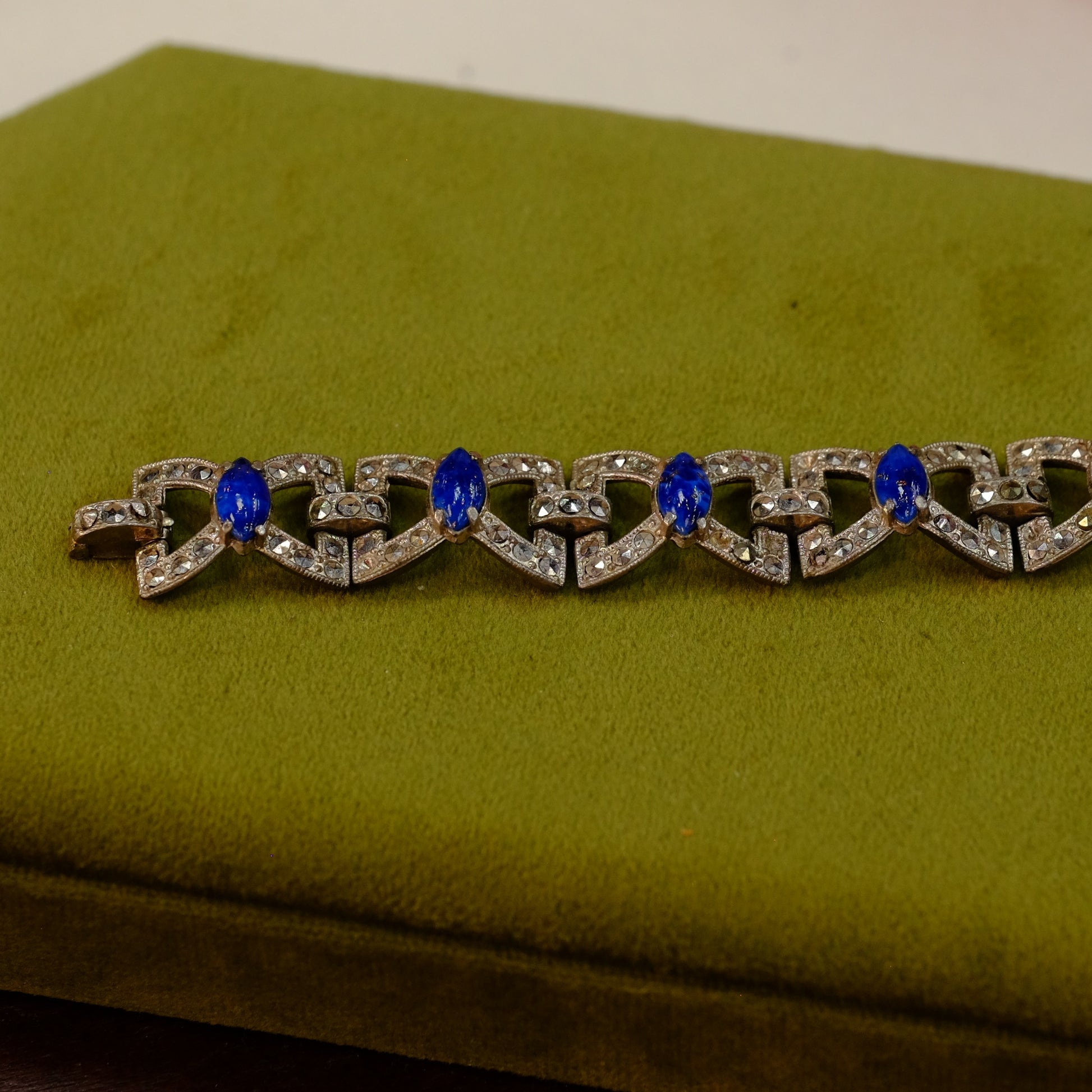 Art Deco link bracelet with marcasites and navy cabs