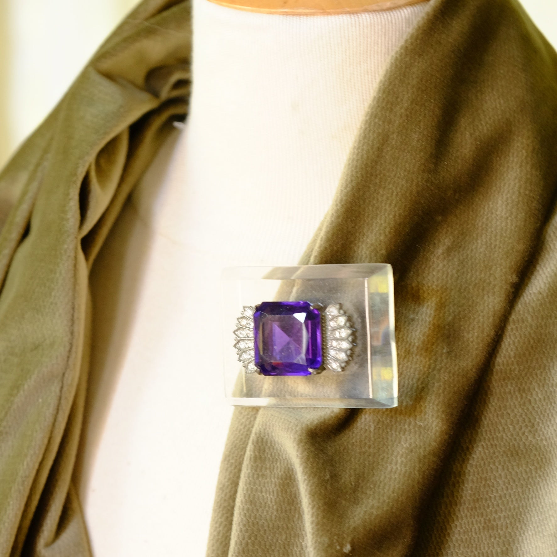 Art Deco Lucite with Amethyst Glass Brooch 1930s