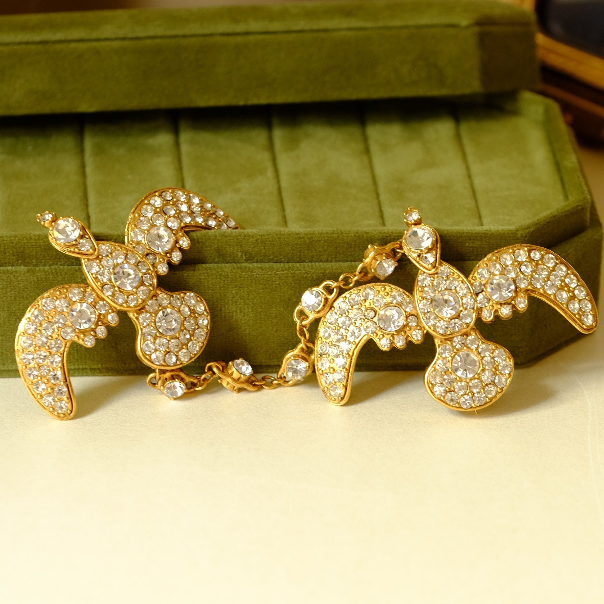 This Chatelaine Pair Birds Brooch from the 1990s features a charming design of two birds, crafted with attention to detail. Its vintage style makes it a timeless accessory, perfect for adding a subtle touch of elegance to any outfit. This brooch offers a unique way to showcase your appreciation for classic jewelry pieces.