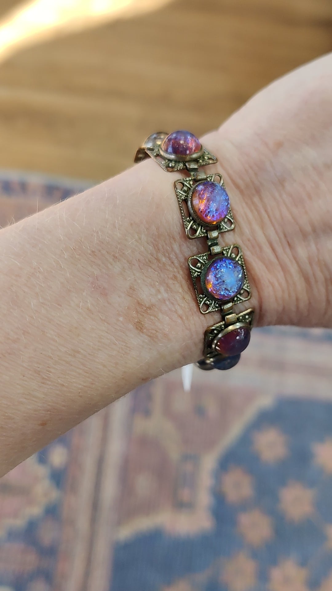 Antique Czech Filigree Jelly Faux Opals Bracelet