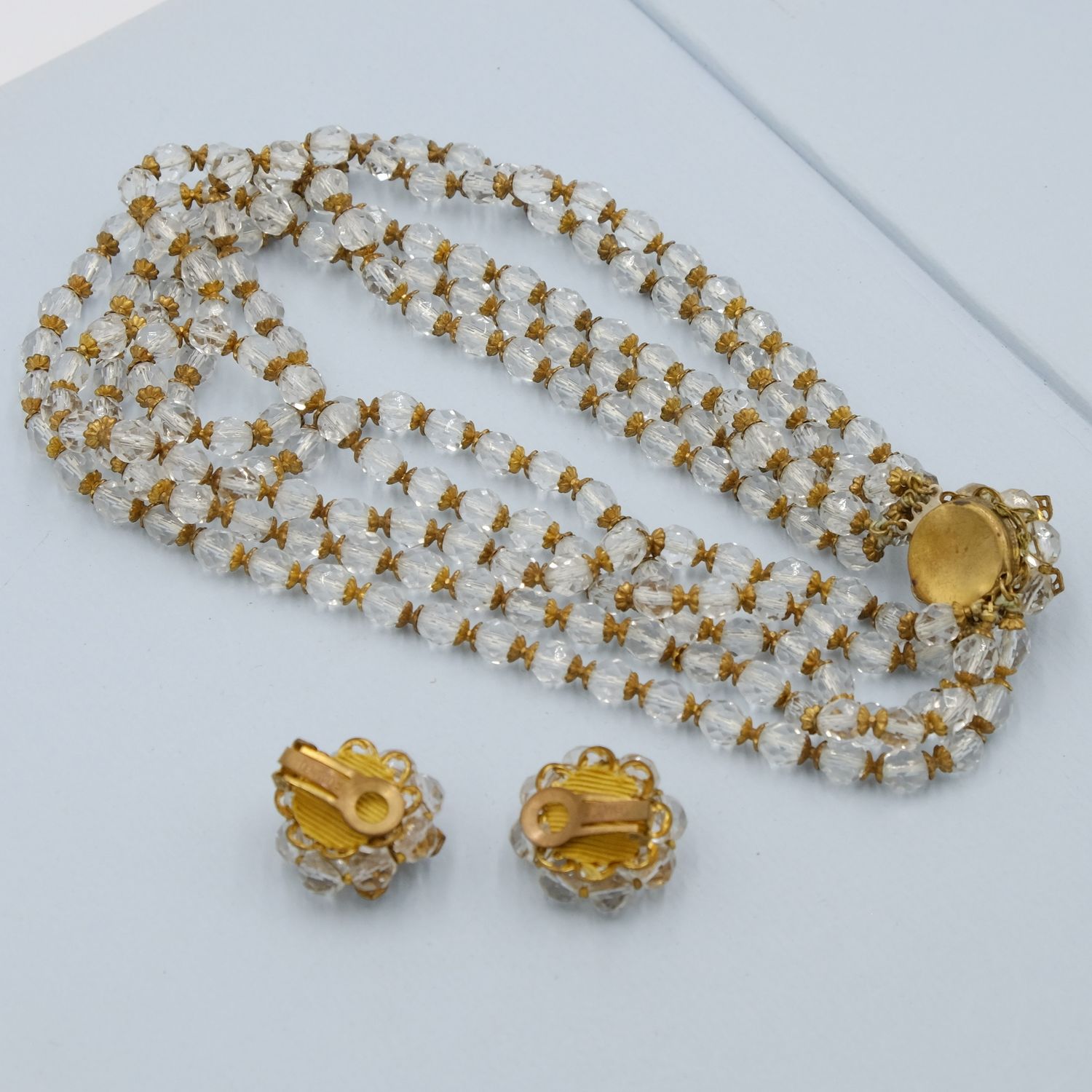 DeMario Multi-strand Clear Necklace and Earrings set 1950s