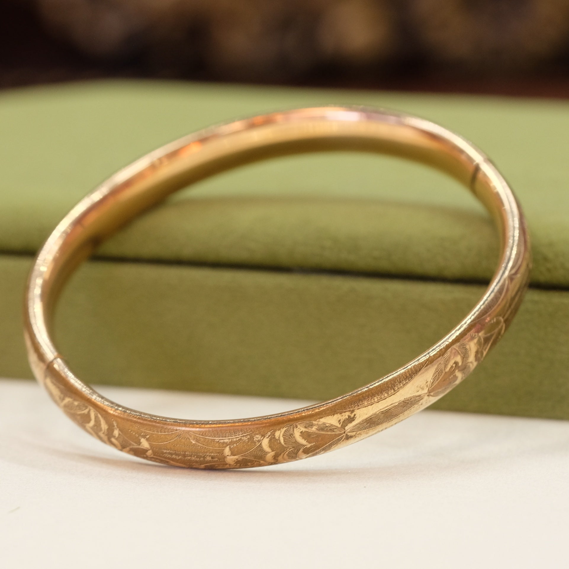 Edwardian Gold Filled etched bangle