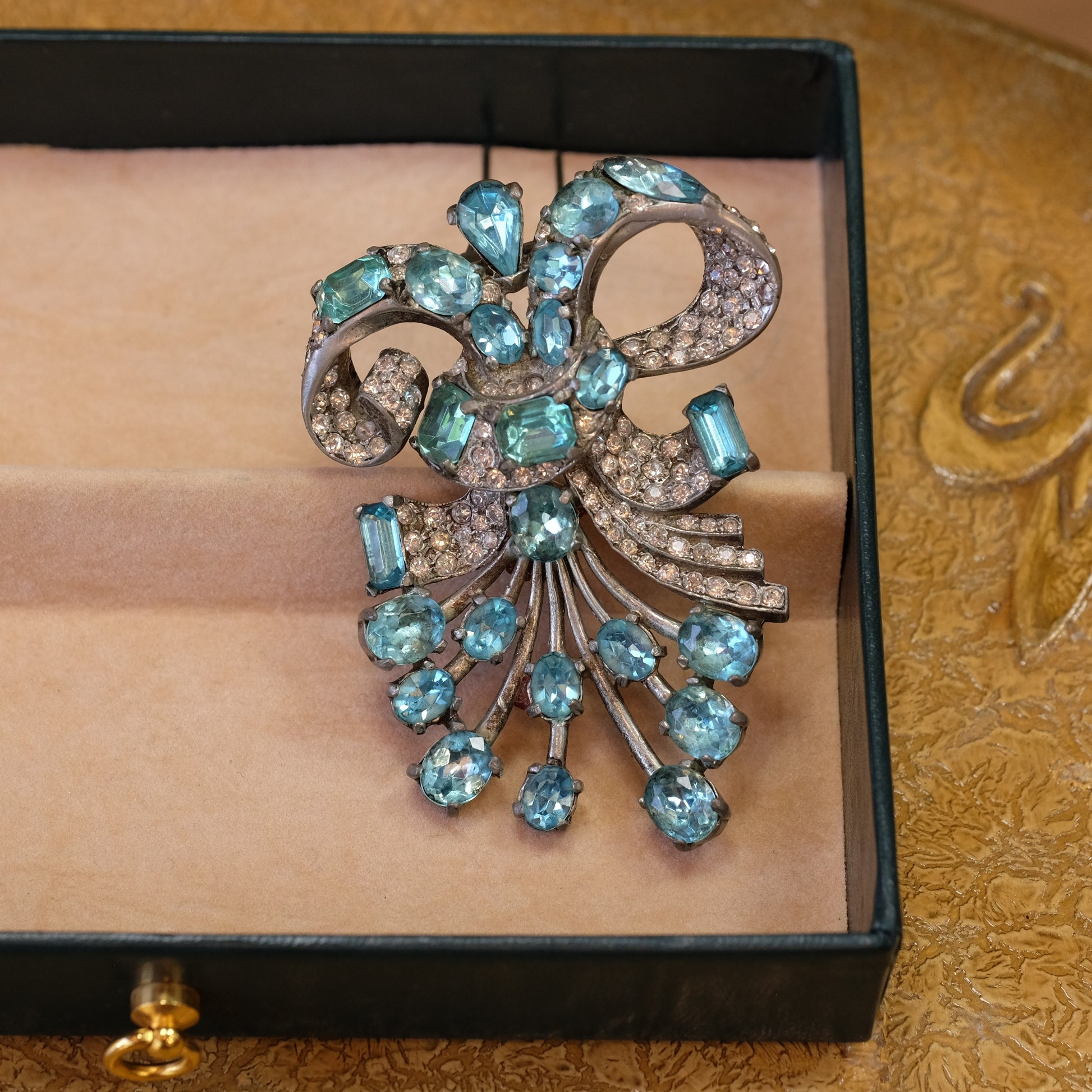 Eisenberg Originals Blue Rhinestone Fur Clip 1940s
