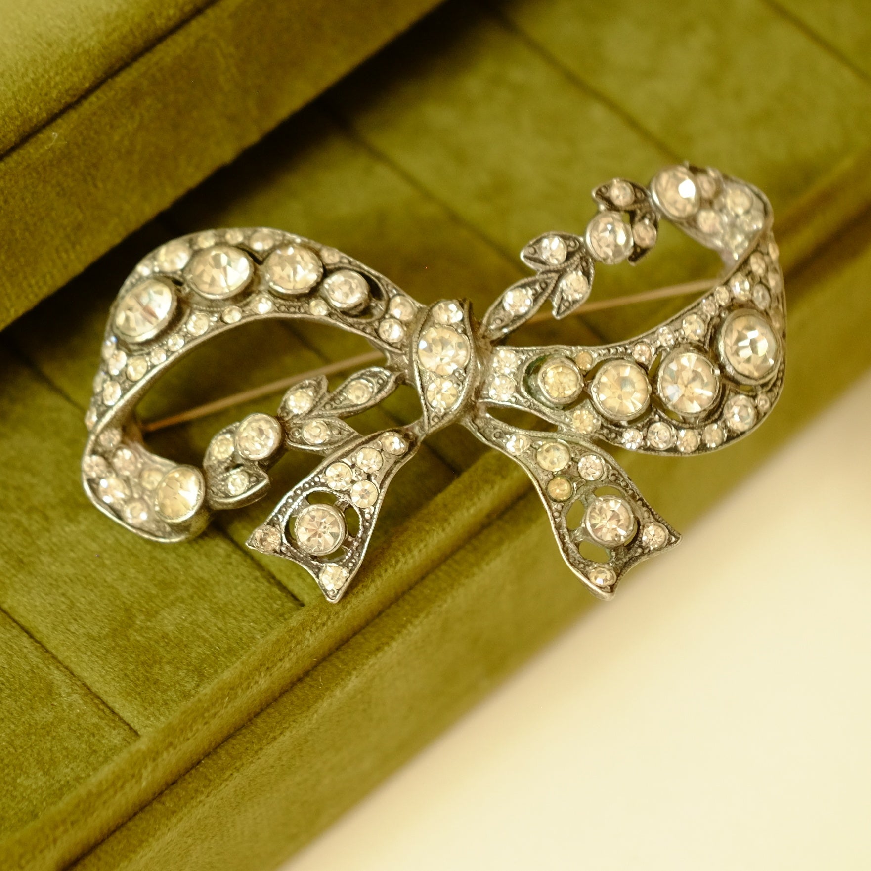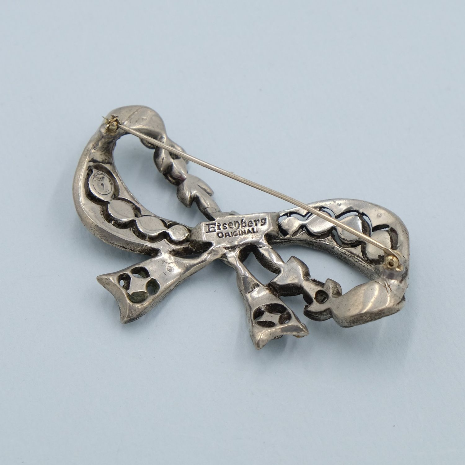 This exquisite Eisenberg Original bow from the 1940s exemplifies vintage elegance and craftsmanship. Known for its distinctive design and high-quality materials, this piece reflects the timeless artistry of mid-century jewelry. Perfect for collectors and connoisseurs, it adds a sophisticated touch to any ensemble while preserving a piece of history.