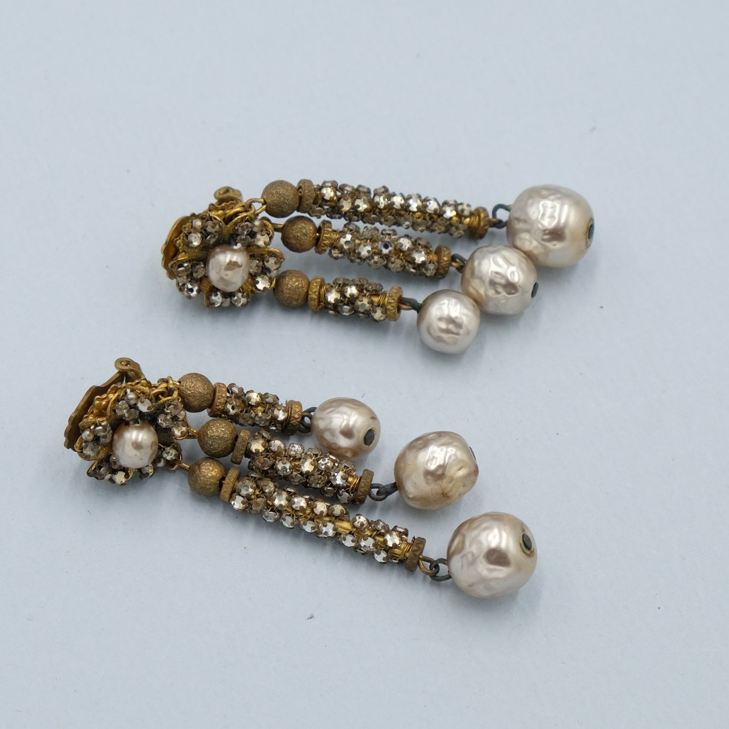 Miriam Haskell Graduate Length Rose Mantee 3 dangle pearls 1950s