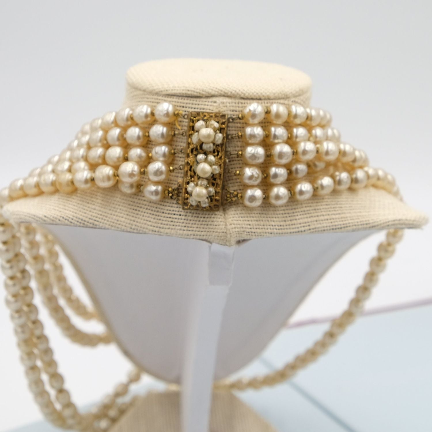 Miriam Haskell 5 row Baroque Pearls Statement Necklace 1950s
