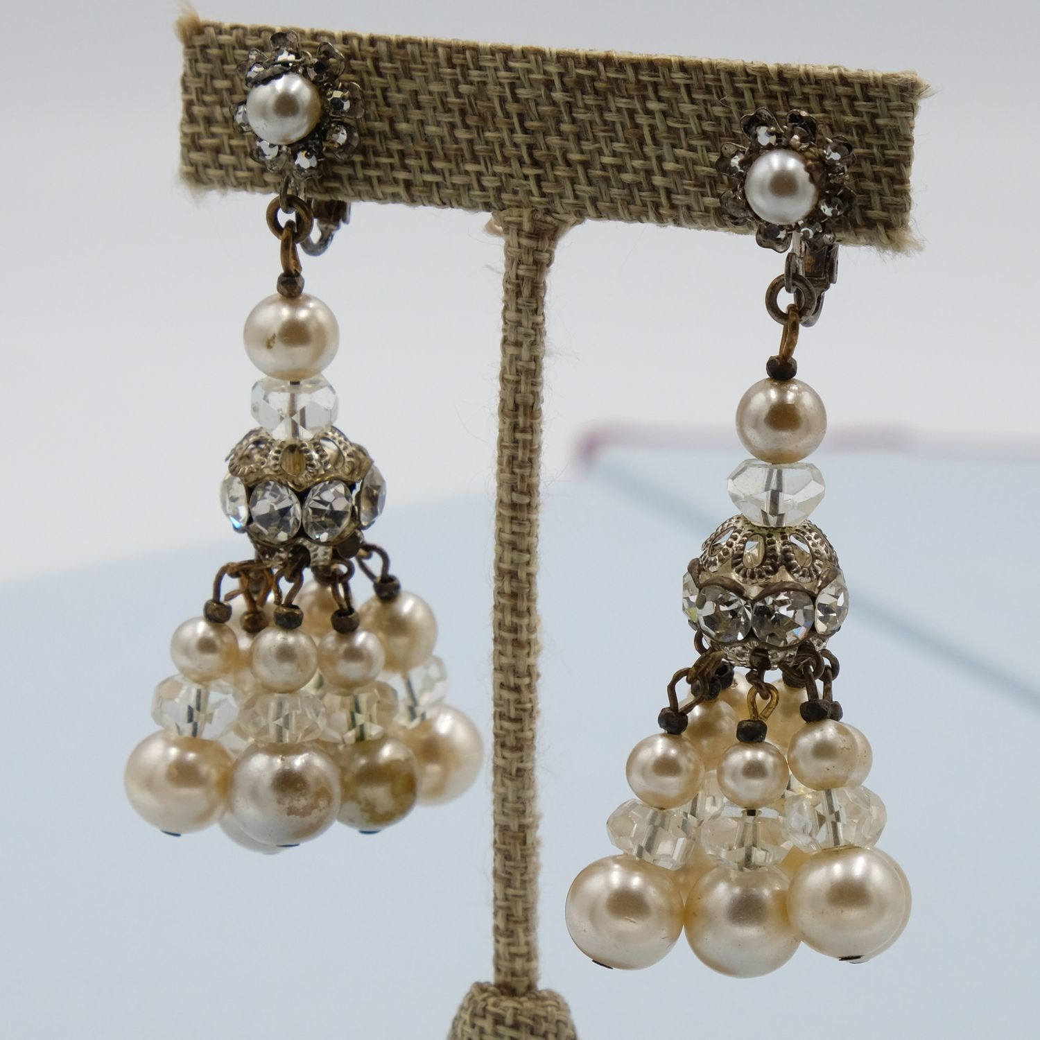 Miriam Haskell Chandelier Faux Pearl Earrings 1960s