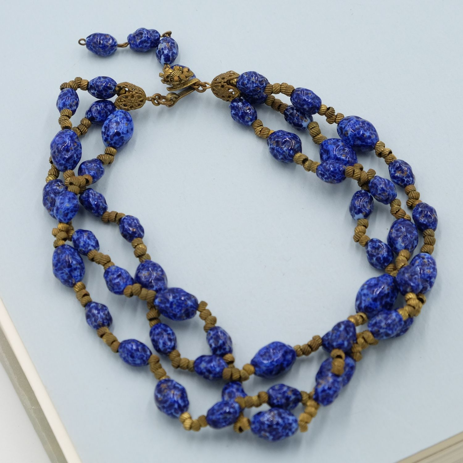 Miriam Haskell Cobalt Art Glass Necklace 1950s