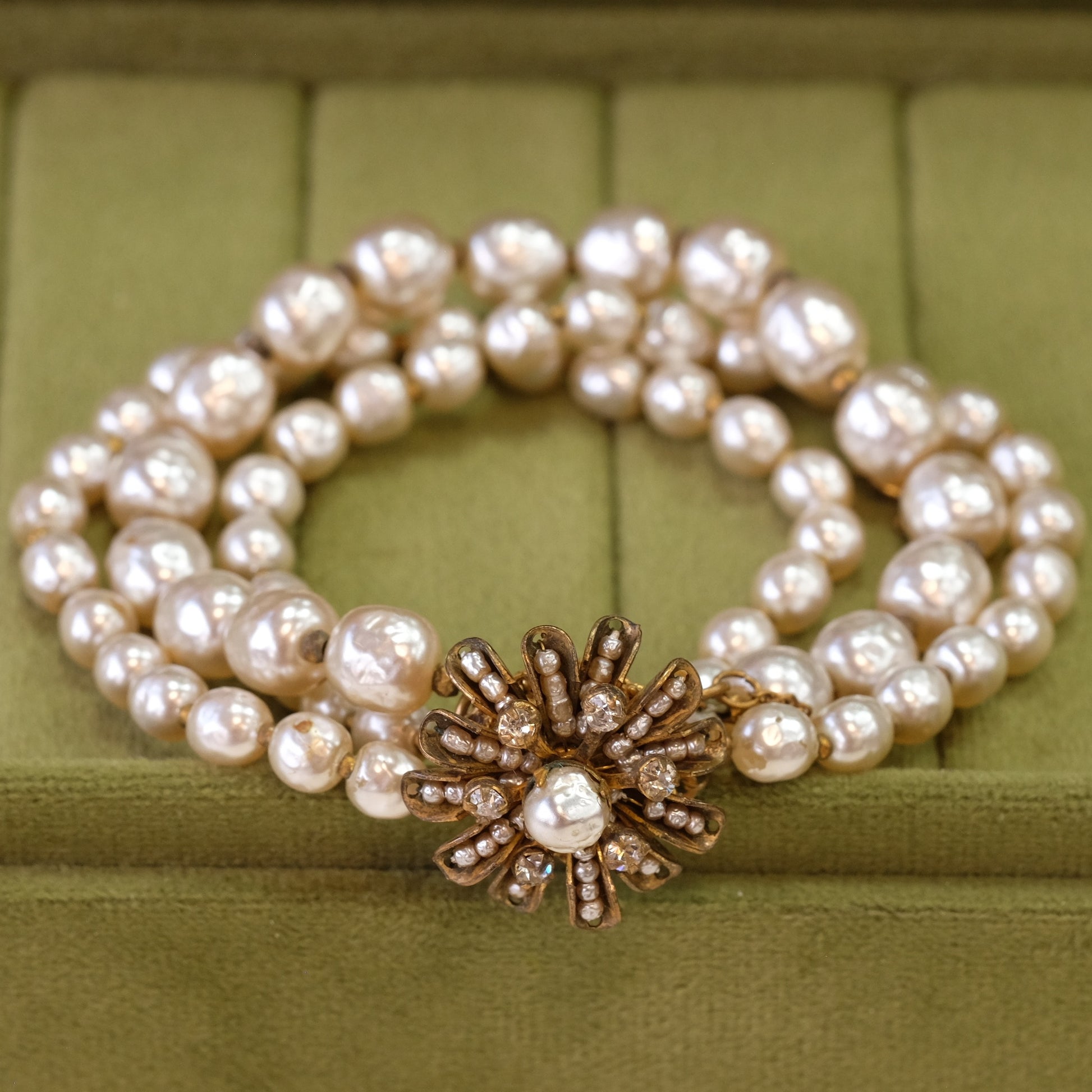 Miriam Haskell Three Row Pearl Bracelet 1960s