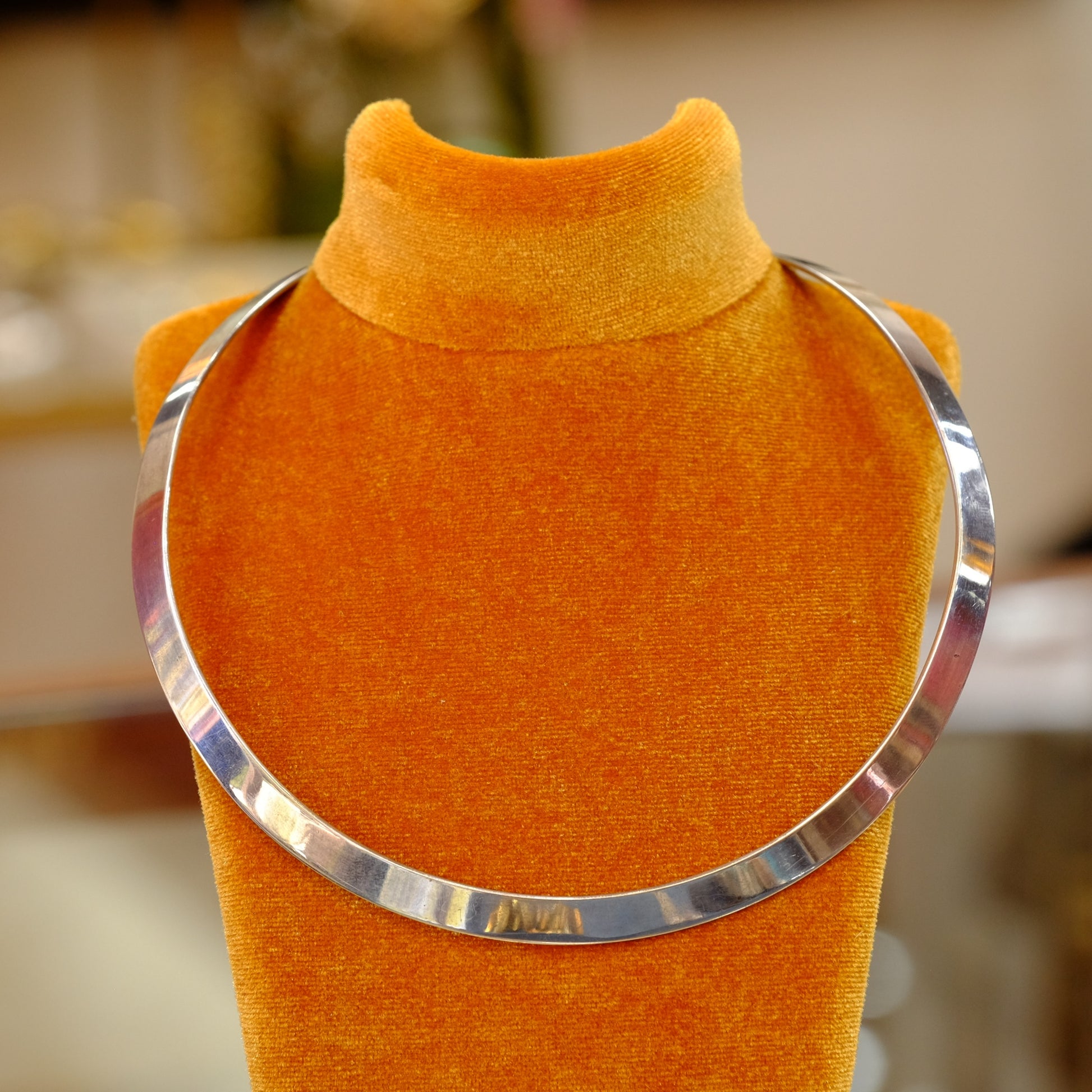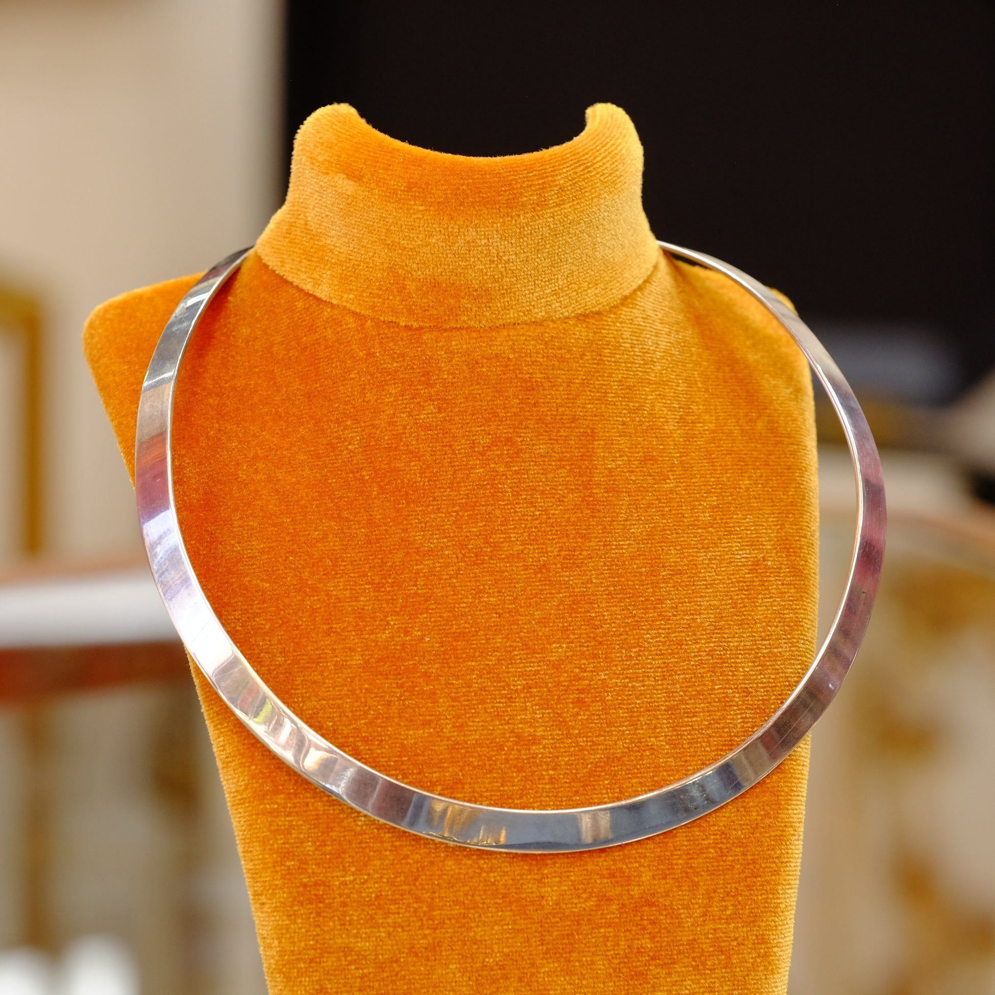Elegant sterling silver collar necklace by James Avery, a renowned Texas-based jeweler known for timeless designs. This piece features the signature quality craftsmanship and attention to detail that defines the brand. The collar style sits gracefully at the neckline, making it versatile for both everyday wear and special occasions. Sterling silver construction ensures durability and a lustrous finish that develops character over time. A classic addition to any jewelry collection, perfect for those who appreciate fine American-made accessories.