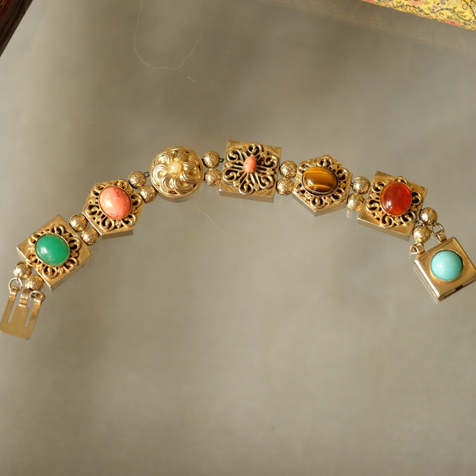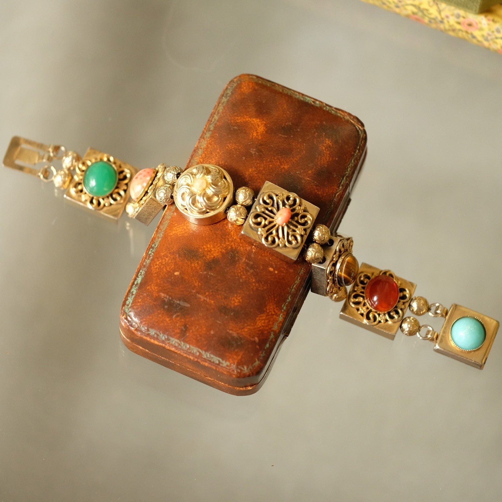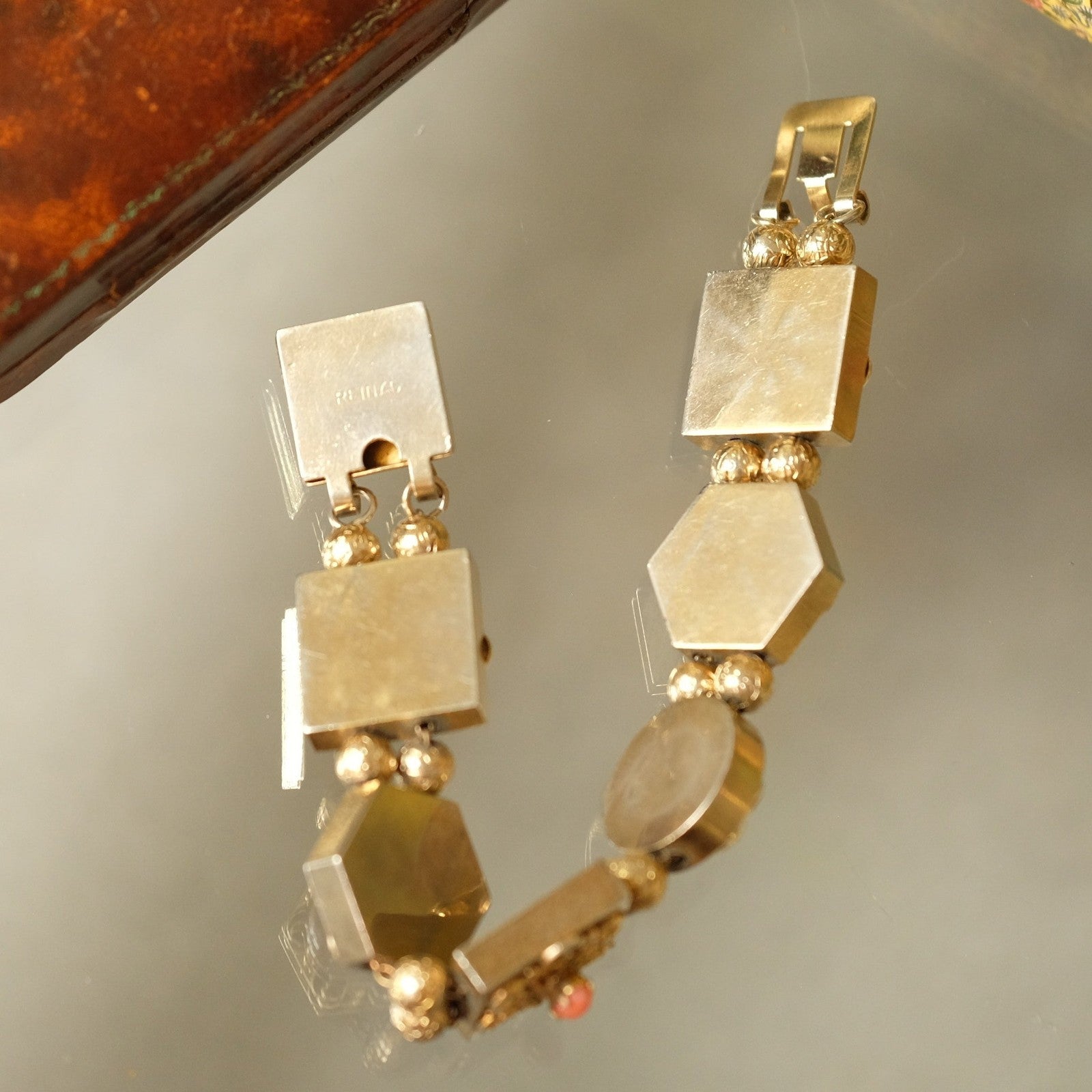 The Reinad Vintage Slider Revival Bracelet from the 1950s showcases classic mid-century design with adjustable slider functionality for a comfortable fit. Crafted with attention to detail, this bracelet offers a timeless accessory that complements both casual and formal styles. Its vintage appeal makes it a unique addition to any jewelry collection.