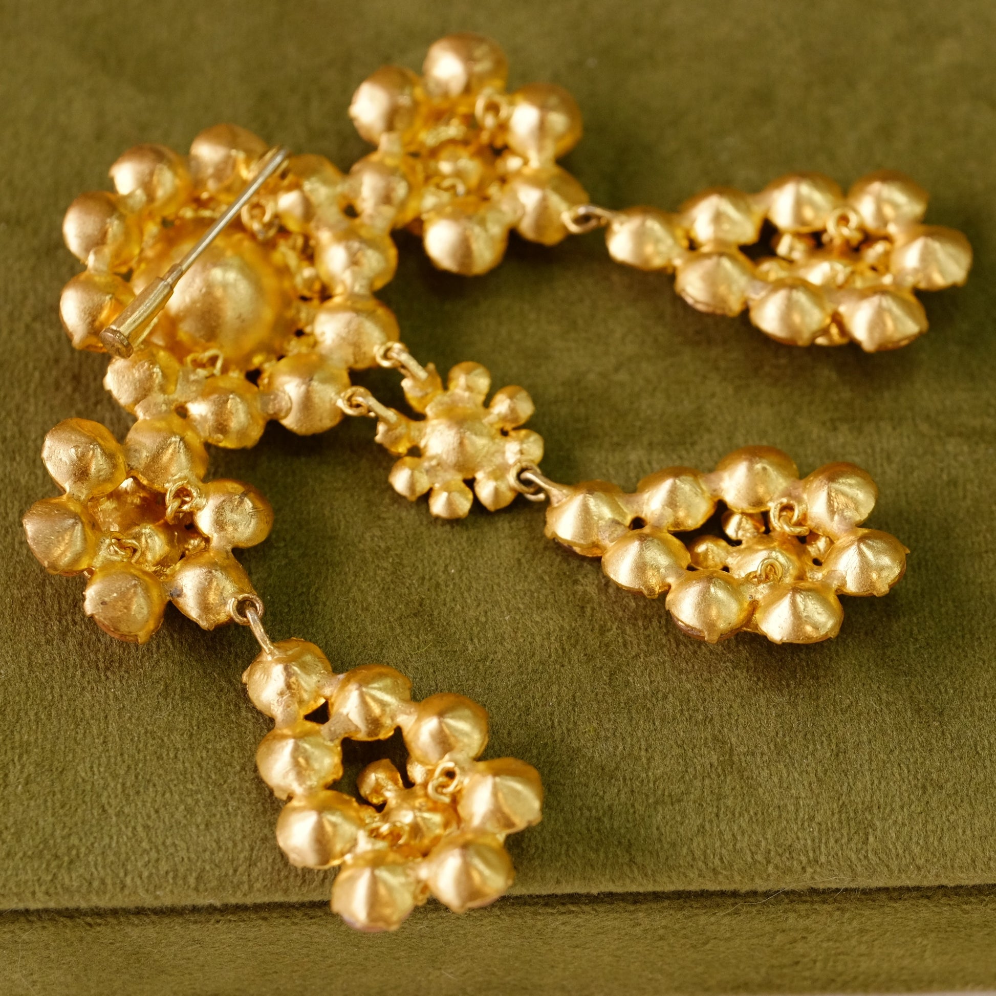 This charming 1950s brooch by Roger Jean Pierre features delicate pink dangling elements that capture the elegance of mid-century design. The piece showcases the craftsmanship characteristic of this era, with graceful movement and refined detailing. Perfect for vintage jewelry collectors or anyone seeking to add a touch of classic sophistication to their accessory collection. A timeless statement piece that reflects the glamorous aesthetic of the 1950s.