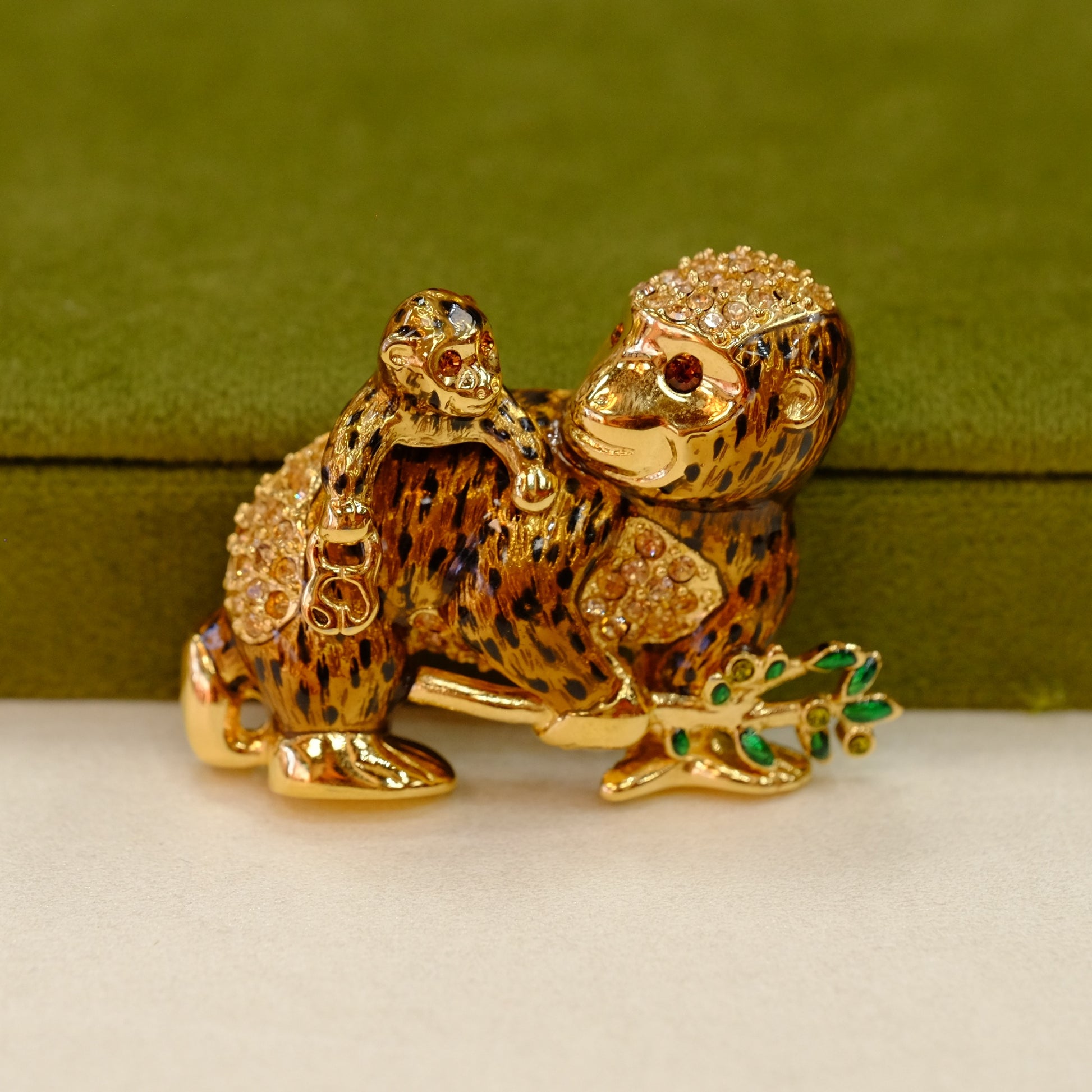 St. John Mother and Baby brooch portrays an intimate moment between mother and child, rendered in the traditional style of devotional art. The composition emphasizes the gentle connection and spiritual significance of the subject matter. Ideal for collectors of religious iconography, this piece brings reverence and artistic refinement to any outfit.