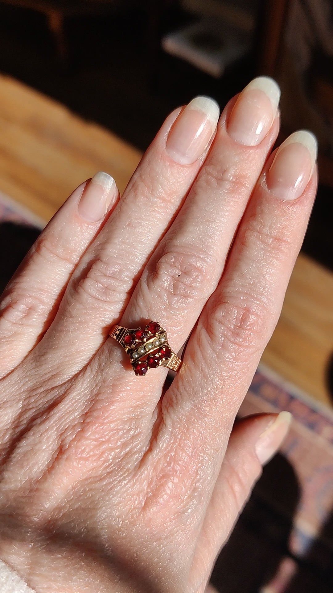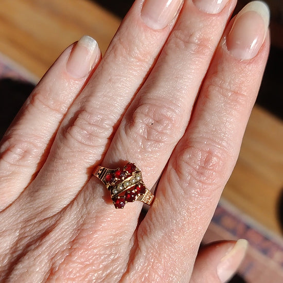 Victorian 10K Garnet Seed pearls Ring
