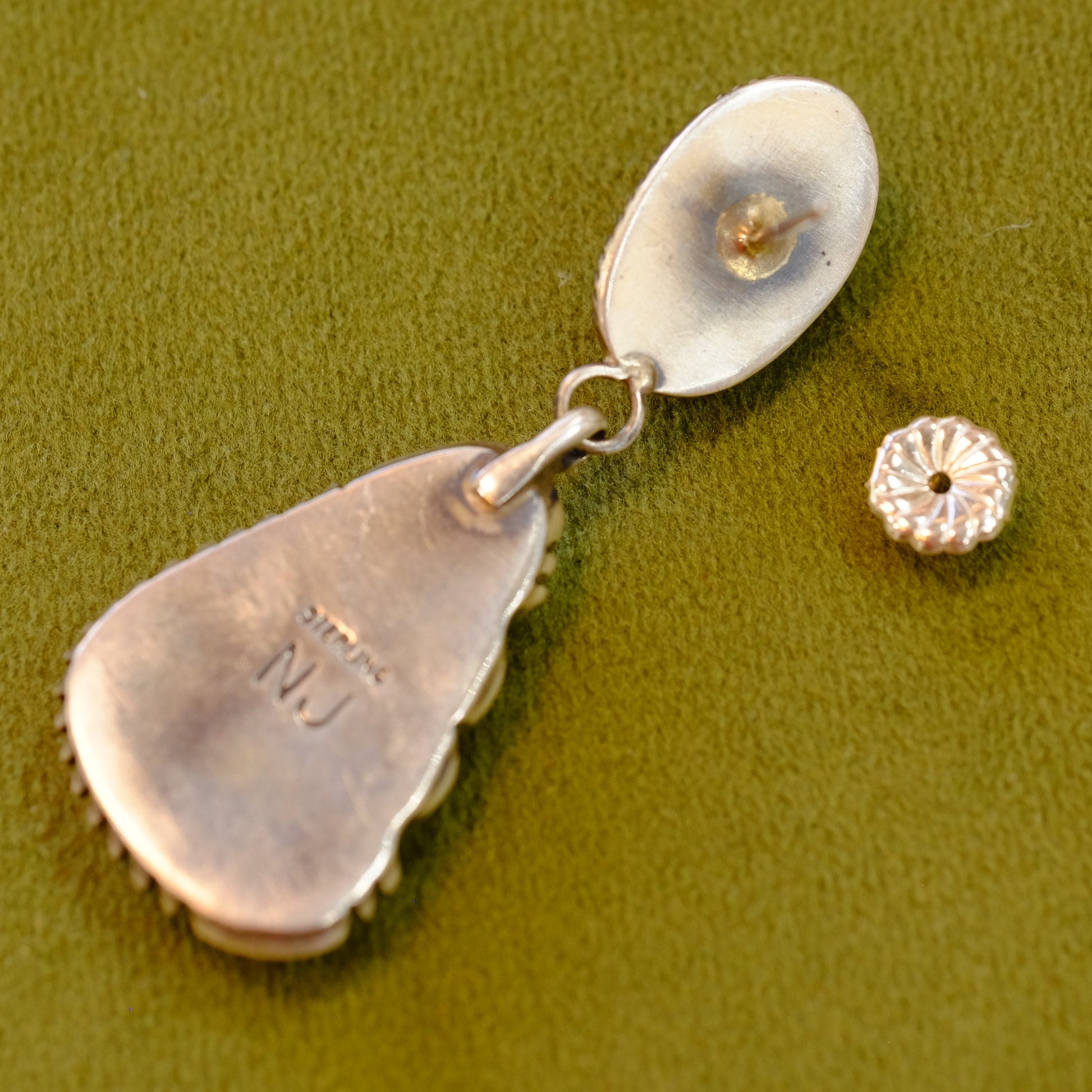 Handcrafted silver and stone pierced earrings featuring vibrant turquoise accents, designed by artist Nila Johnson. Each pair showcases the natural beauty of turquoise stone paired with sterling silver metalwork, creating an elegant statement piece. Perfect for adding a pop of color and artisanal charm to any outfit. A timeless accessory that celebrates both craftsmanship and natural materials.