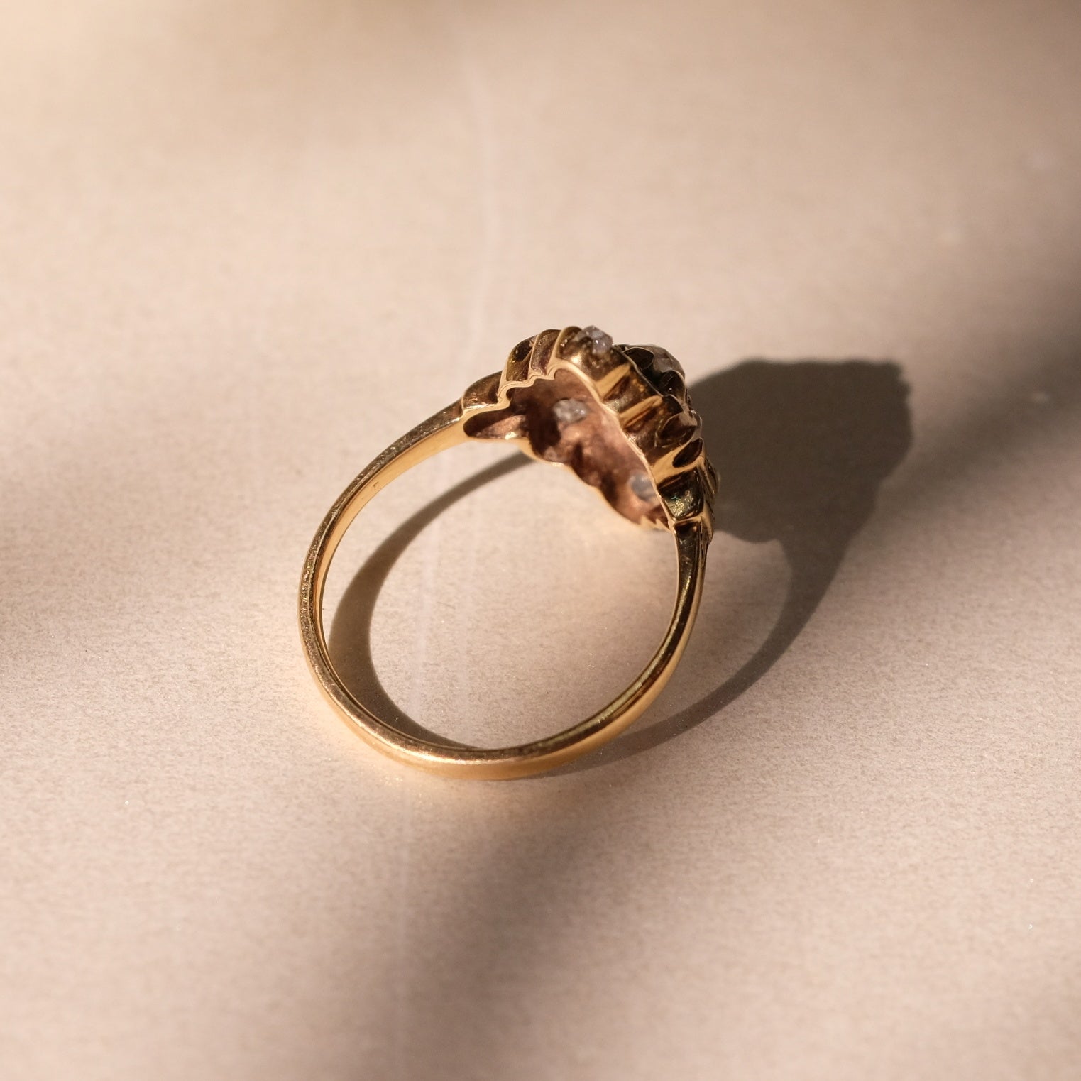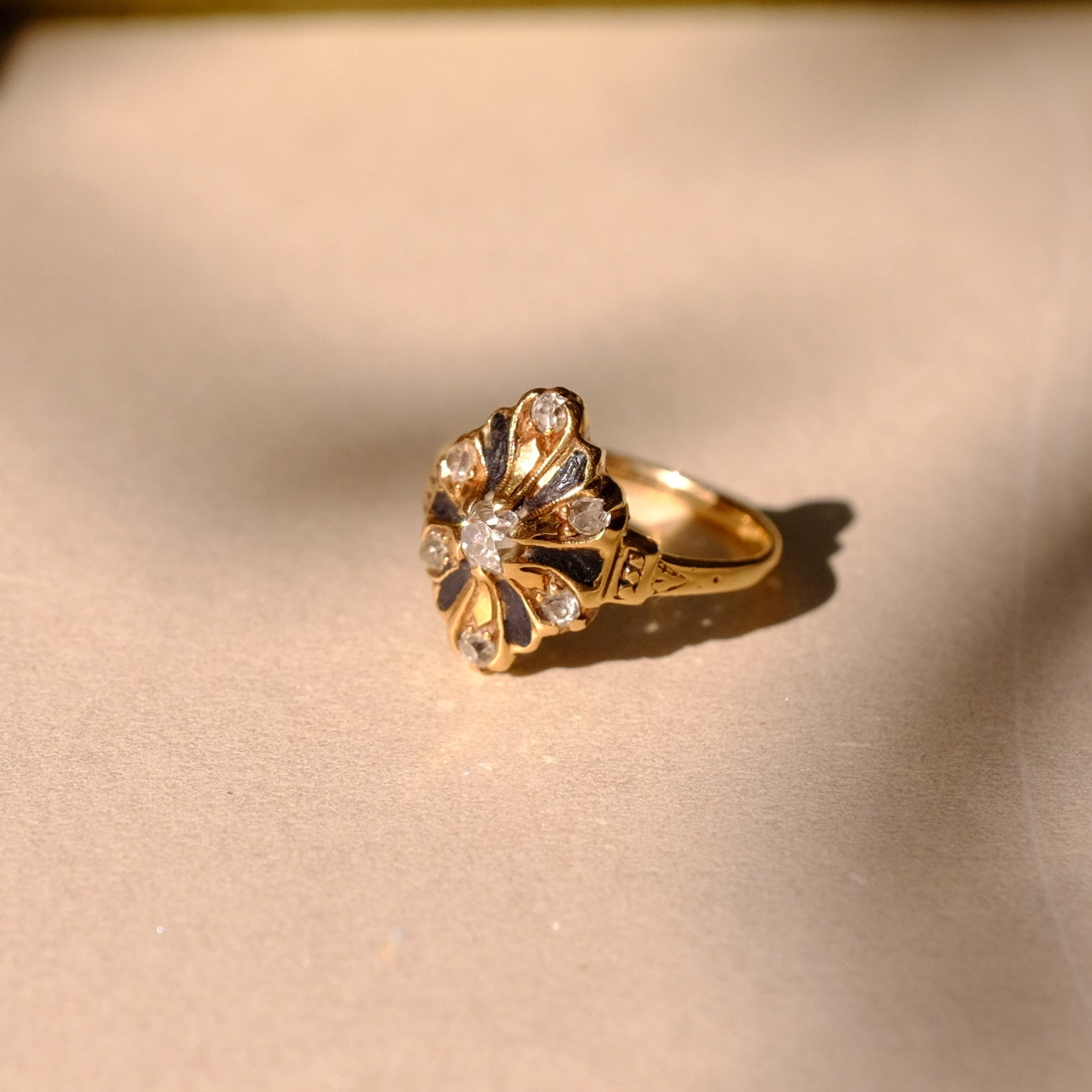 This exquisite Victorian-era ring showcases a stunning rose cut diamond set in 14k gold, capturing the elegance and craftsmanship of the period. The rose cut diamond's distinctive faceting creates a soft, romantic sparkle characteristic of Victorian jewelry design. The 14k gold setting provides durability and a warm, lustrous finish that complements the stone's delicate brilliance. A timeless piece perfect for collectors of antique jewelry or those seeking a unique, historically significant ring with enduring appeal.