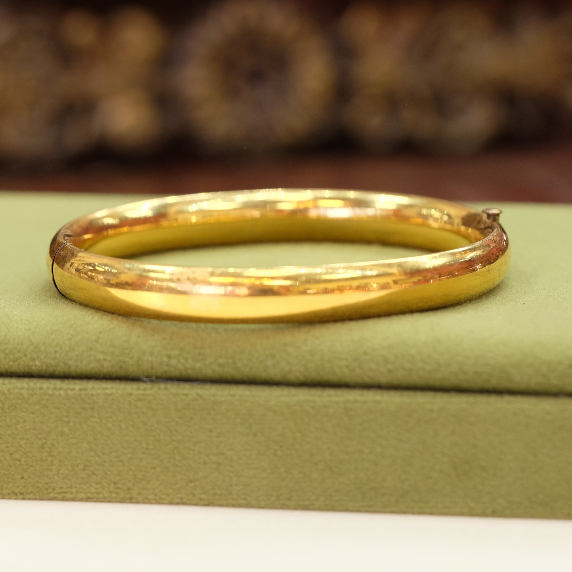 This exquisite Victorian-era bangle showcases delicate floral enamel work set against lustrous gold-filled metal. The intricate flower design captures the ornamental elegance characteristic of the Victorian period, with vibrant enamel detailing that adds depth and character. Gold-filled construction ensures durability while maintaining the warmth of precious metal. Perfect for collectors of vintage jewelry or anyone seeking a refined, timeless accessory that blends historical craftsmanship with enduring style.