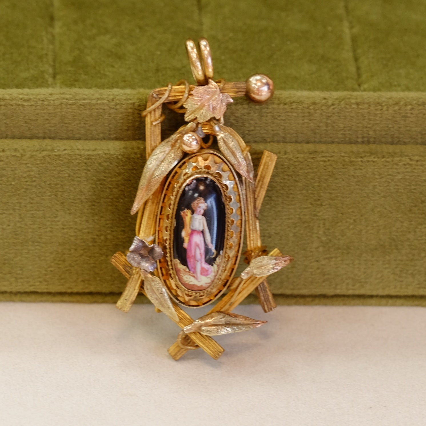 This Victorian gold-filled pendant features an intricate and ornate design, reflecting the elegance of the era. Its durable gold-filled construction ensures long-lasting quality and a timeless look, perfect for adding a classic touch to any jewelry collection or outfit.