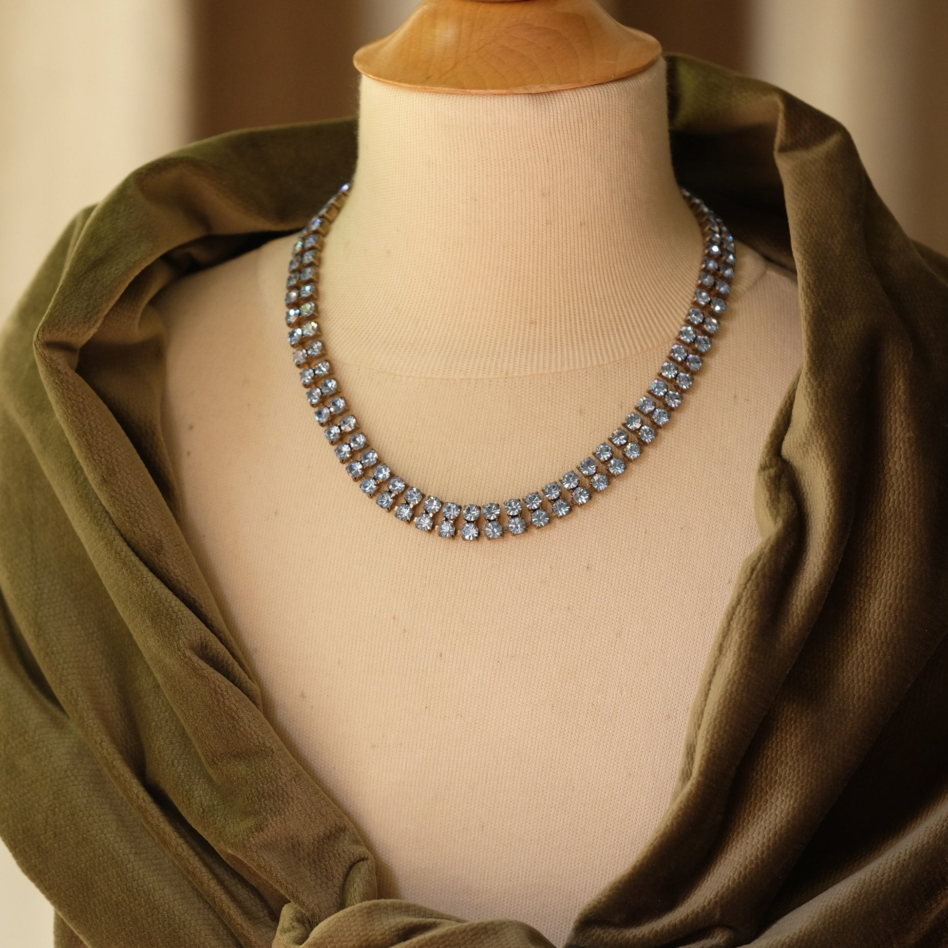 This exquisite 1950s Austrian blue crystal necklace, unsigned, remains in impeccable condition, showcasing timeless vintage elegance.