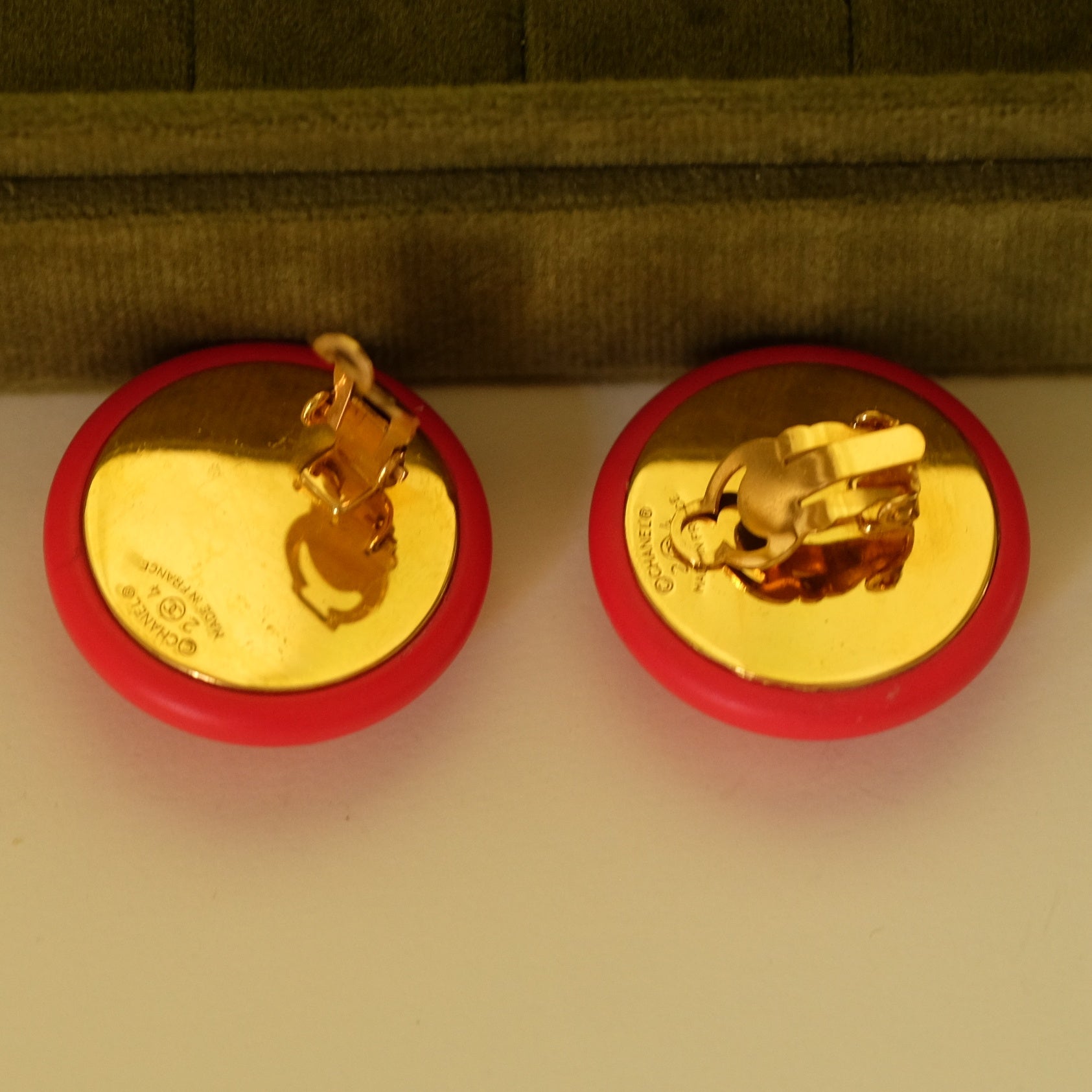 These vintage Chanel earrings from the 1980s feature the iconic round logo design, showcasing classic elegance and timeless style. Crafted with attention to detail, they offer a unique accessory that complements both casual and formal looks. Perfect for collectors or those seeking a distinctive piece from a renowned fashion house.