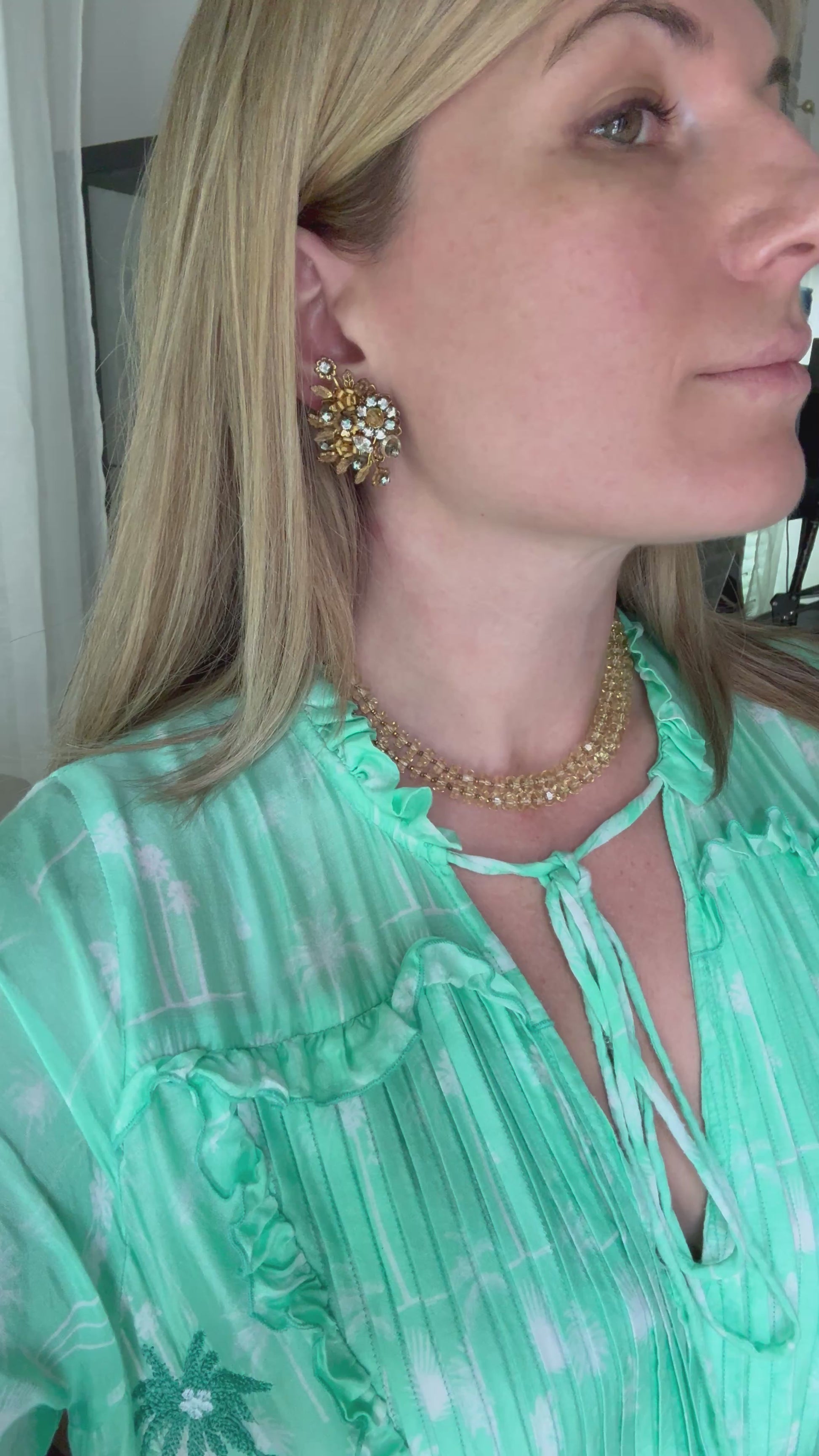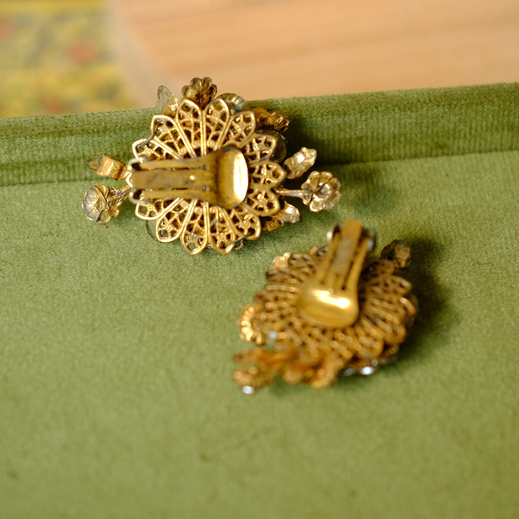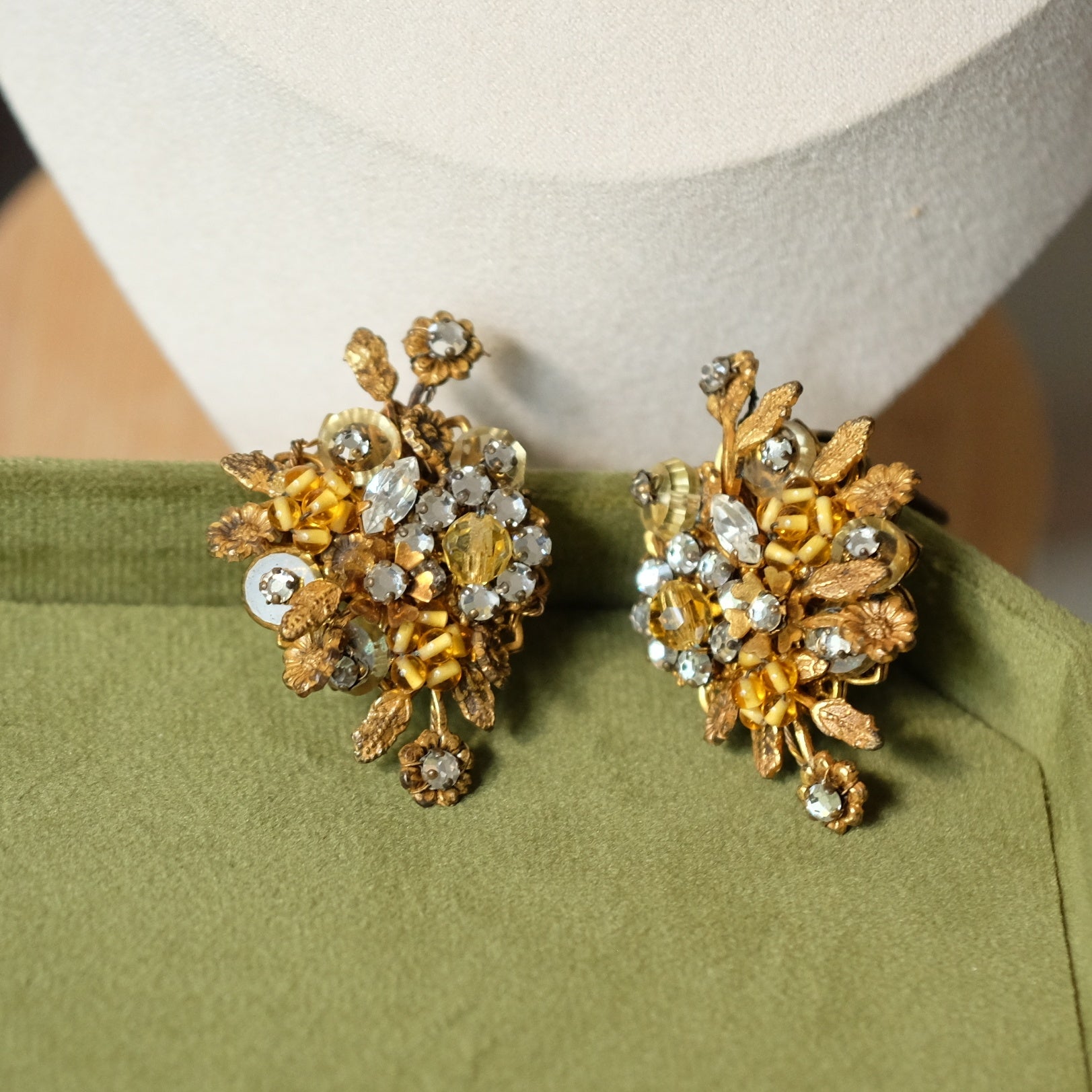 This Vintage DeMario necklace and earrings set from the 1950s features beautifully crafted faux citrine stones. The warm golden hues add a classic touch to any outfit, making it a timeless accessory for vintage jewelry collectors or those seeking elegant retro style.