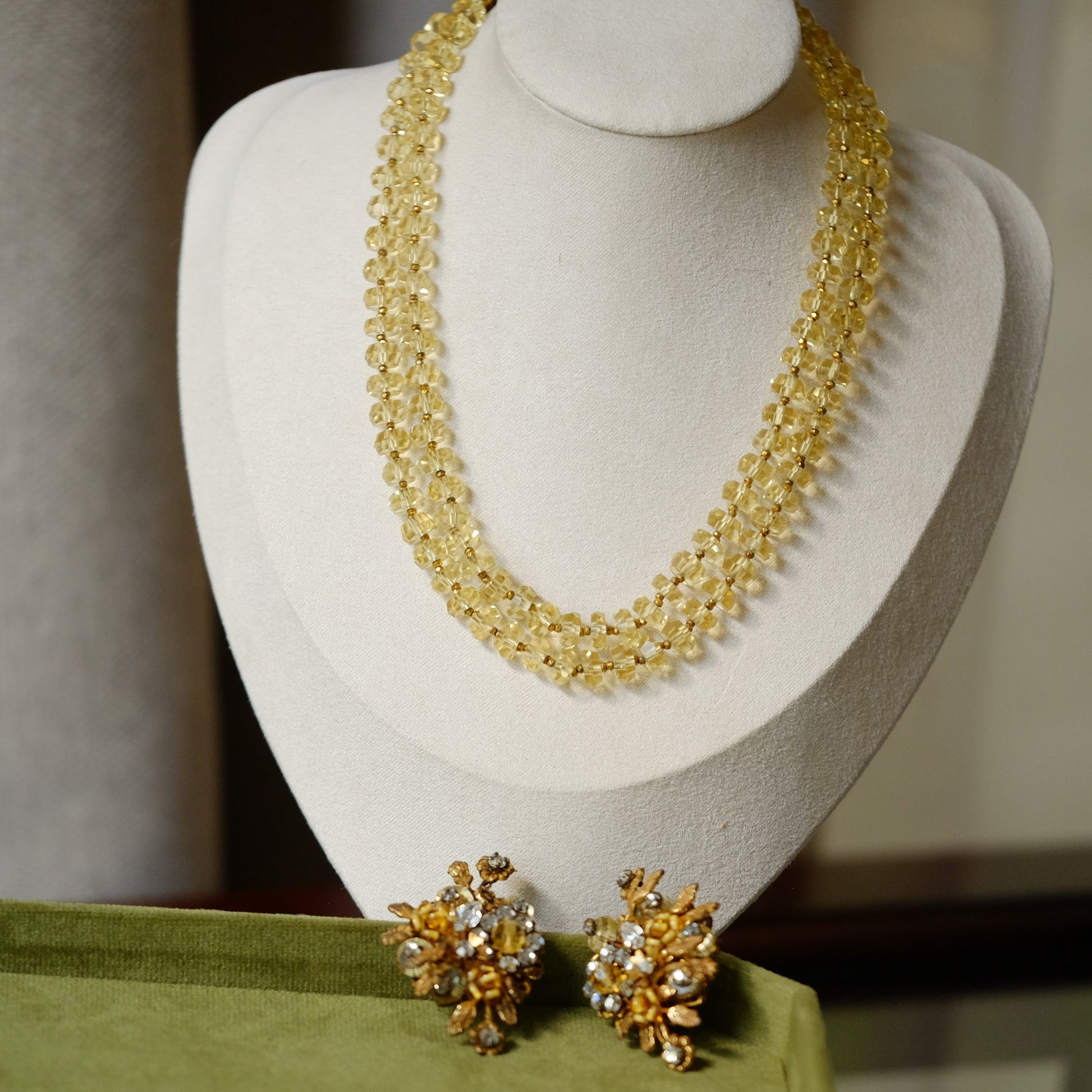 Vintage DeMario Faux Citrine Necklace and Earrings Set 1950s