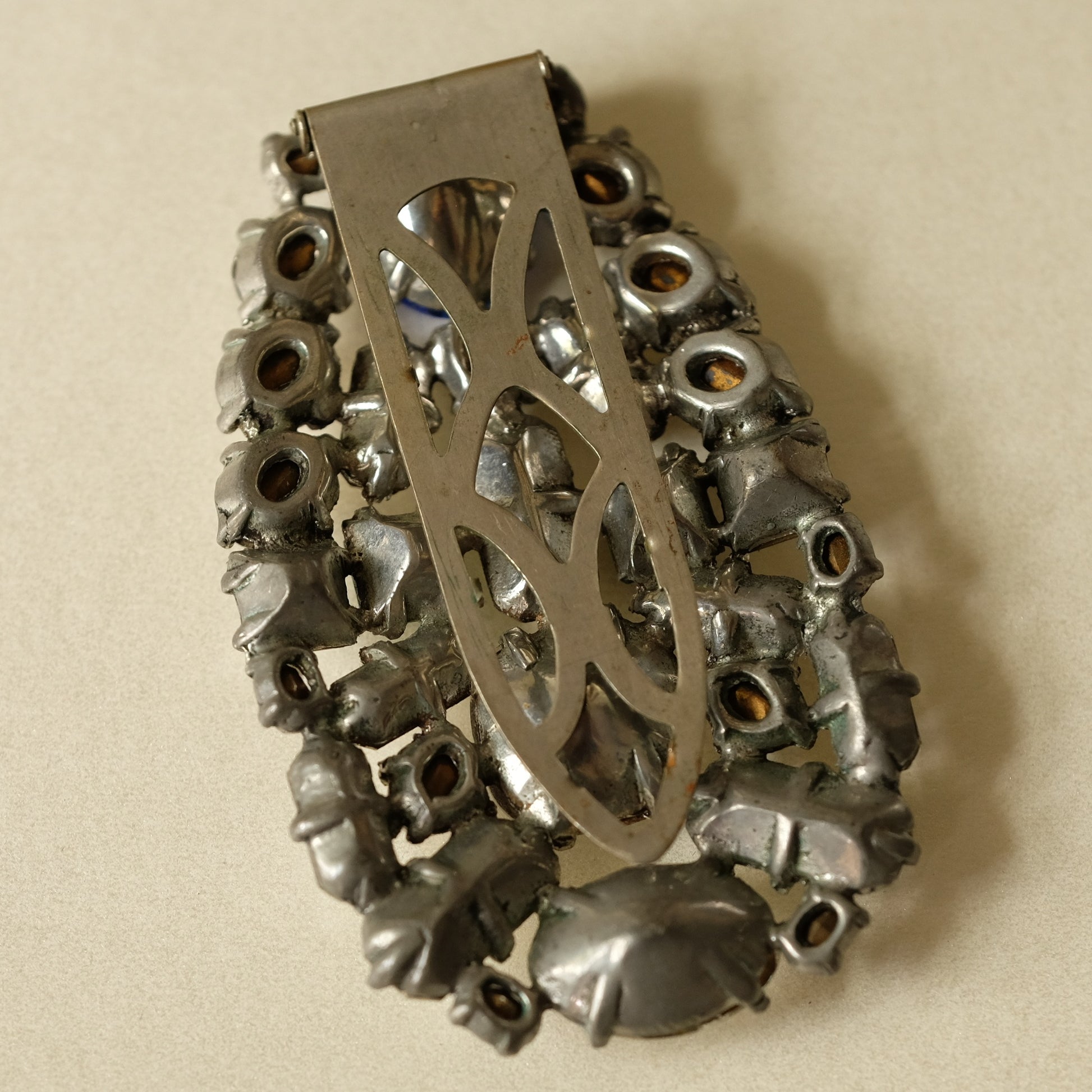 Vintage Eisenberg Blue, Clear and Green Dress Clip 1940s