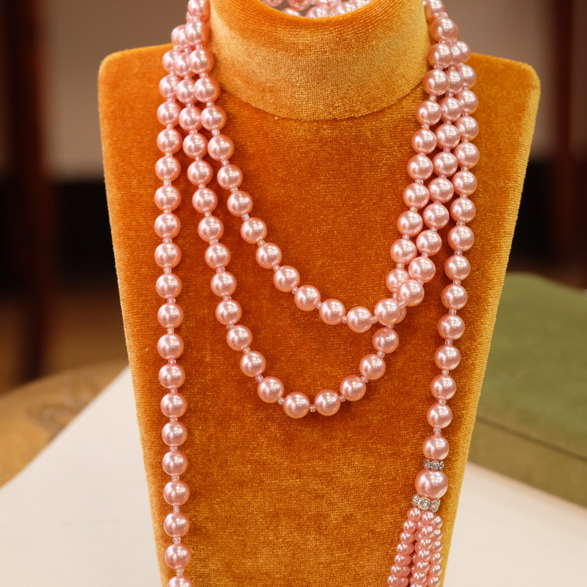 Vintage Long Tassel Pink Faux Pearl Necklace