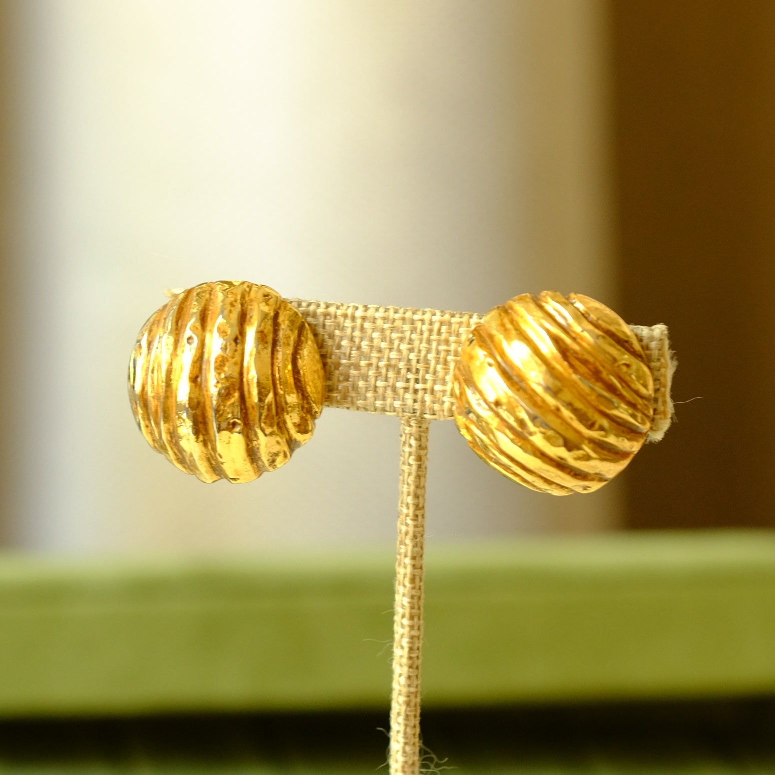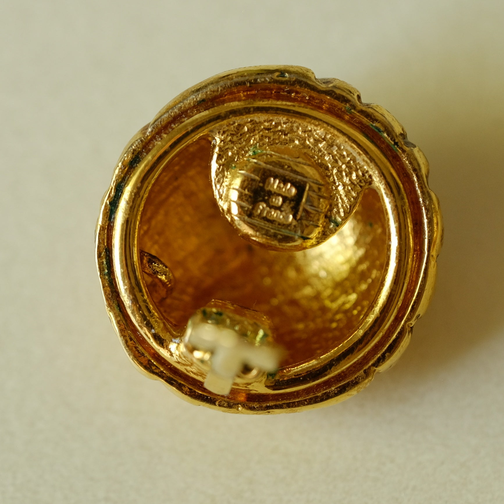 These vintage structured earrings from the 1980s, made in France, showcase timeless design and craftsmanship. Their distinctive shape adds elegance to any outfit, making them a perfect accessory for those who appreciate classic, retro style. Lightweight yet durable, they offer comfortable wear while reflecting the bold fashion trends of their era.