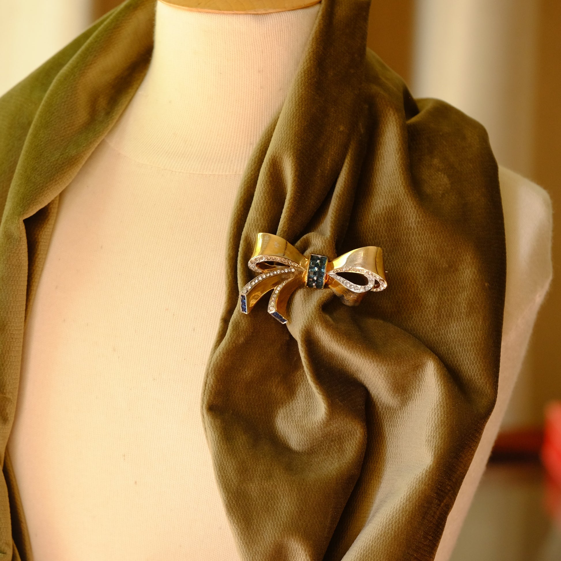 Vintage Marcel Boucher Blue Bow Pin 1940s