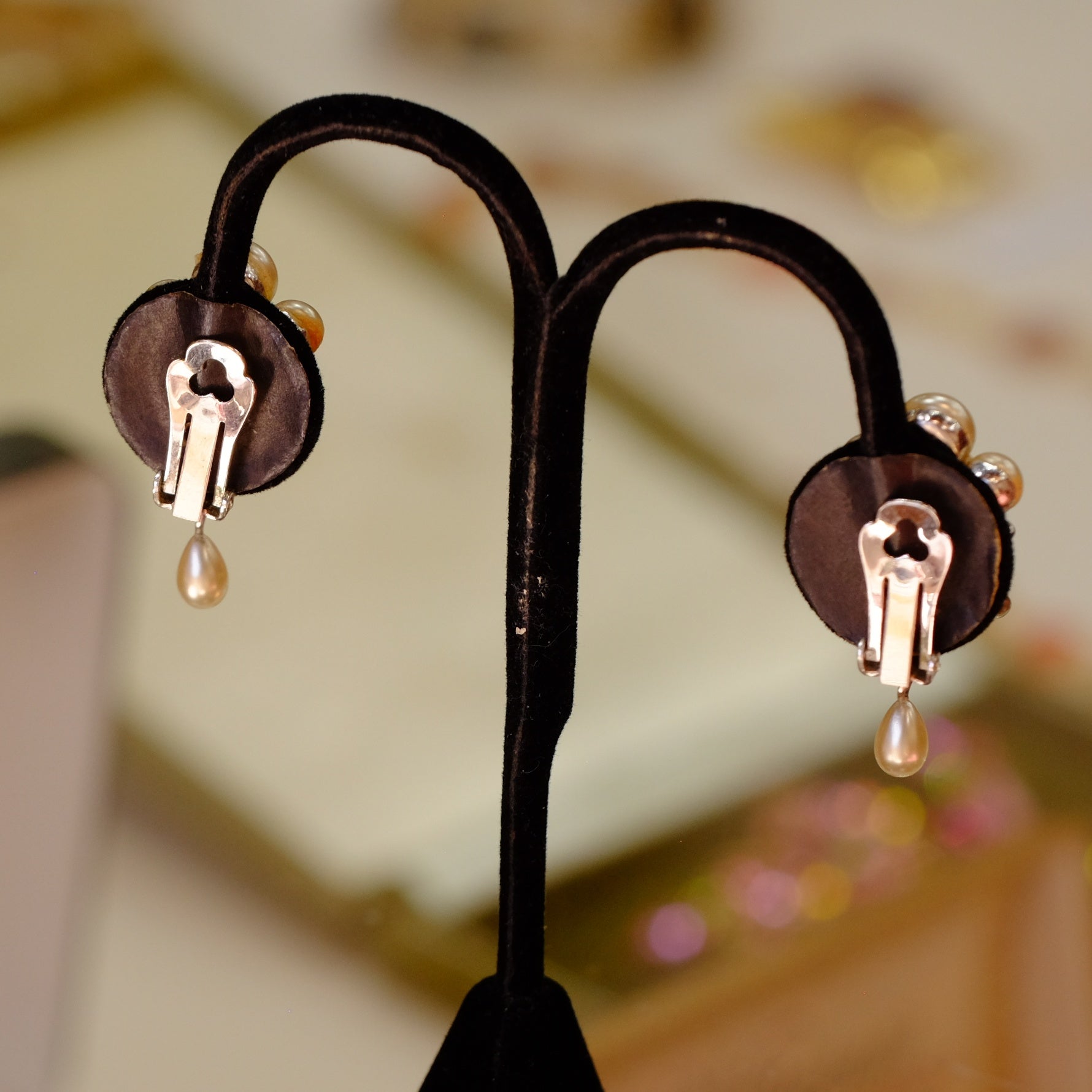 Elegant vintage pearl drop earrings from the 1970s, featuring lustrous pearls suspended from delicate findings. These timeless pieces showcase the classic styling of the era with their understated sophistication. Perfect for adding a touch of vintage charm to both casual and formal occasions. Each earring displays the natural variations and patina characteristic of authentic period jewelry. An excellent choice for collectors or anyone seeking genuine vintage accessories with enduring appeal.
