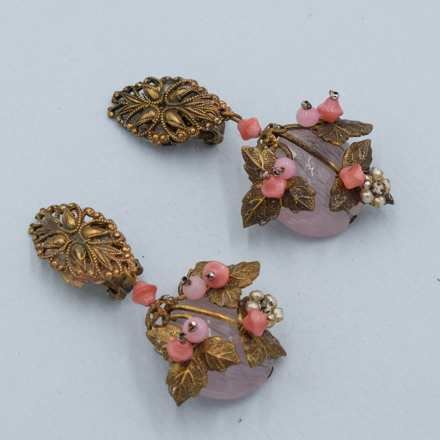 Vintage Pink Glass earrings 1960s
